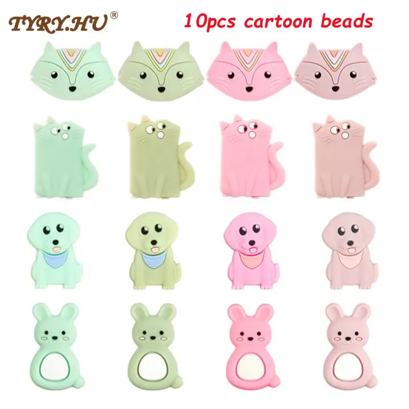 TYRY.HU 10 шт. Мини Силиконовые Мультяшные бусы кролик прорезыватель BPA бесплатно DIY Младенческая цепочка для кормления соски пищевой