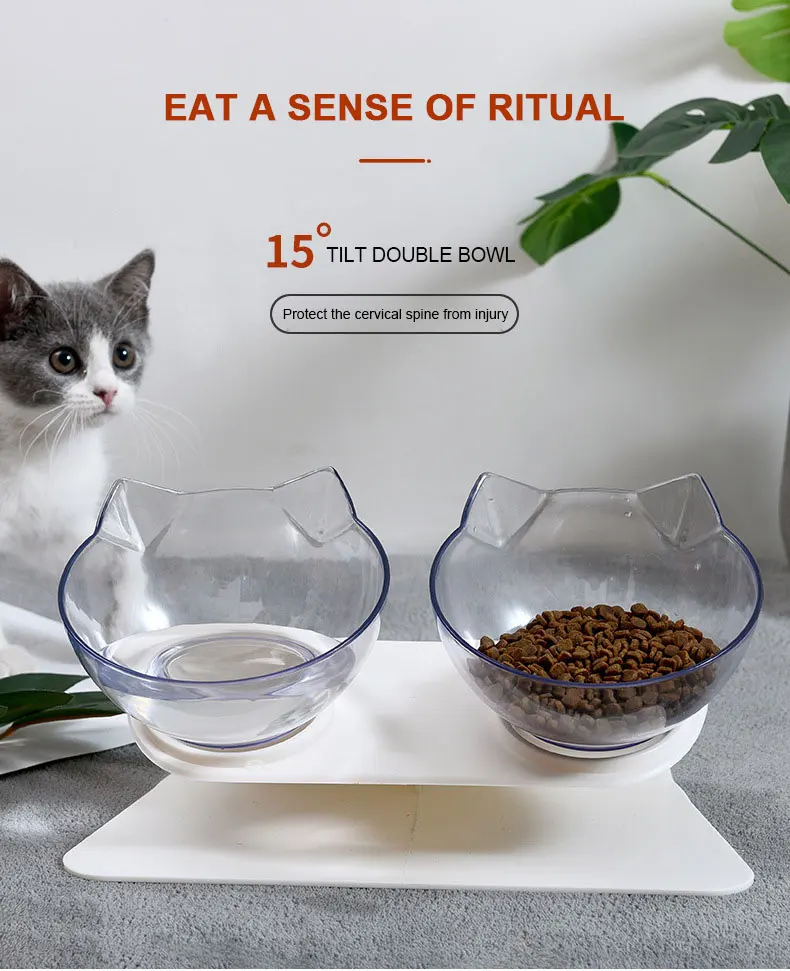 Нескользящая двойная миска для кошек с поднятой подставкой кормушка...