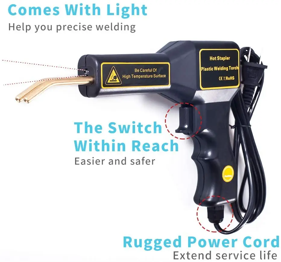 Он может ремонтировать сломанные фитинги в сборе фар, такие как рваные вкладки или любые другие пластиковые компоненты.