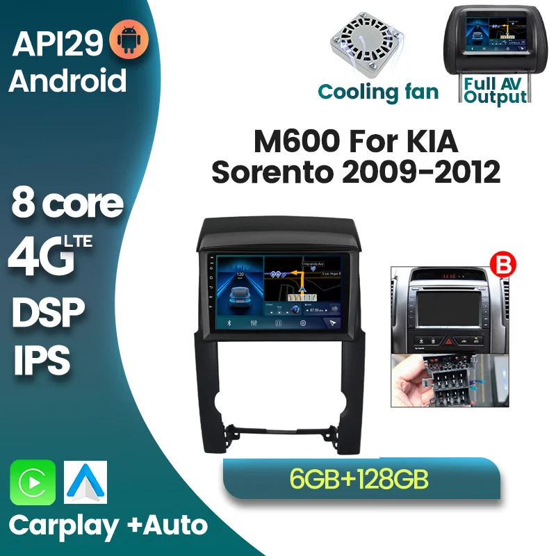 Автомобильный мультимедийный стерео-плеер 6 + 128G DSP Android 10 4GLTE для KIA Sorento 2009 2010 2011 2012 GPS навигация радио камера Carplay