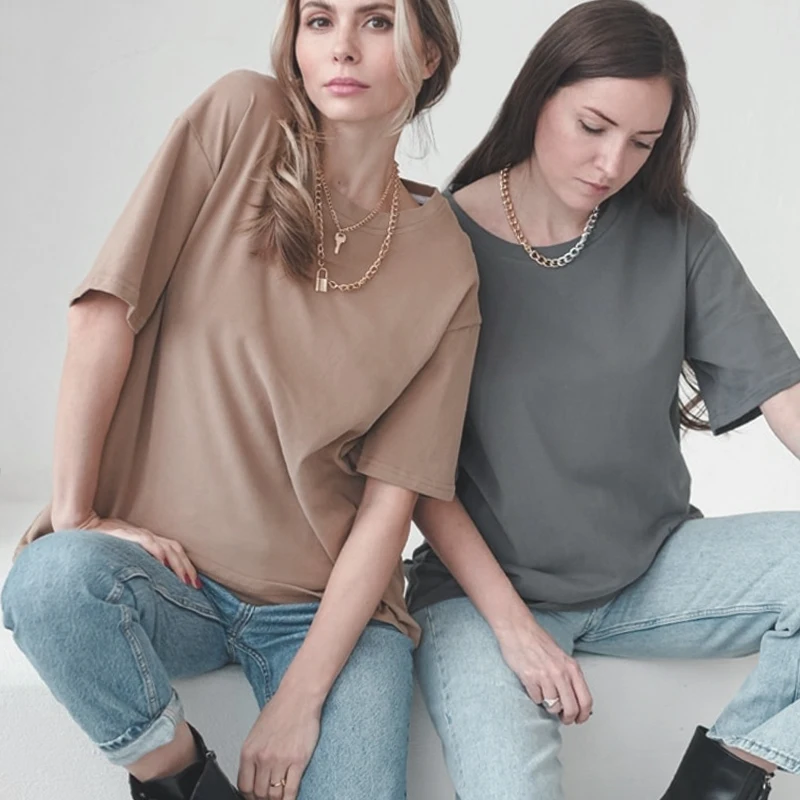 Футболка женская оверсайз, Базовый хлопок, однотонная Повседневная ...