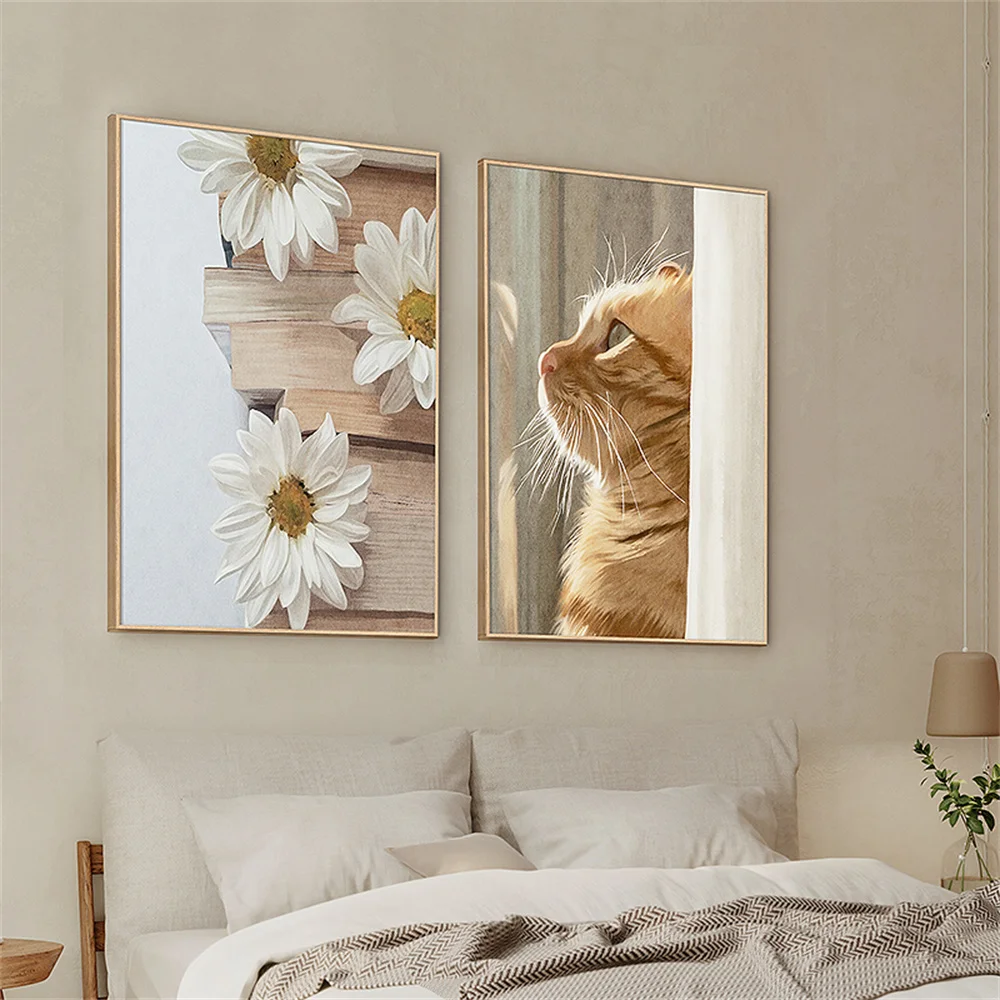 Настенный постер в скандинавском стиле с изображением кота, Листьев, цветов, растений, хризантемы, книга, Картина на холсте, шапочка, кофе, качество времени, Художественная печать, домашний декор