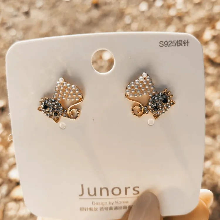 Женские серьги-гвоздики, с изображением кота, котенка, птицы, стразы, ювелирные украшения для дня рождения, серьги-гвоздики с животными