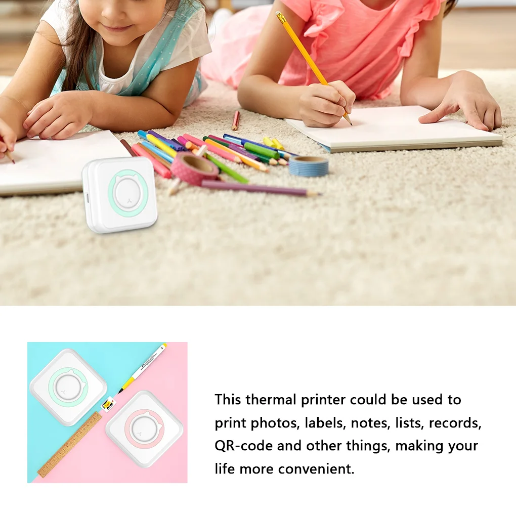 Описание:Передовая Тепловая технология обеспечивает долговечность принтера, и нет чернильной коробки, вы можете заказать в соответствии с вашими потребностями.Встроенный перезаряжаемый аккумулятор емкостью 1000 мАч экономит время и силы для вас, потому что вам не нужно часто заряжать его.Головка принтера с высоким разрешением 200 точек/дюйм может легко печатать четкие и полные фотографии, записывая вашу элегантную и интересную жизнь.Этот тип bluetooth-принтера поддерживает множество функций, включая печать фотографий, этикеток, списков, qr-кода, страницы в сети и другие, также вы можете добавить в него тип и тему с помощью приложения, сделать фото модным.Этот портативный карманный беспроводной принтер прост в использовании, записывает ошибки, сцены и вашу жизнь удобно, интересно и практично.Спецификация:Материал: АБС-пластик.Цвет: зеленый, розовый.Размер: 80x80x35мм.Бумага для печати: 57х30 мм.Тип подключения: беспроводной bluetooth.Емкость аккумулятора: 1000 мАч 7,4 В литиевый аккумулятор.Тип приложения: Загрузите iprint.Примечание:В связи с неточной передачей цвета на экране монитора фактический цвет товара может немного отличаться от цвета на изображении.Пожалуйста, допускайте небольшое отклонение в данных измерений и убедитесь, что вы не возражаете перед заказом.Посылка включает в себя:1 хост.1 кабель для зарядки.1x введение.1 бумага для печати.