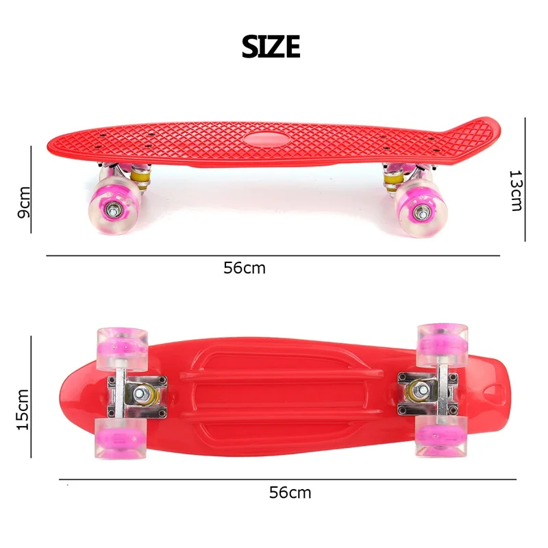 Мини-скейтборд 22 дюйма, пластиковый Лонгборд, Ретро Скейтборд, мигасветильник свет, четыре колеса, рыболовный скейтборд, Уличный спорт, для девочек и мальчиков