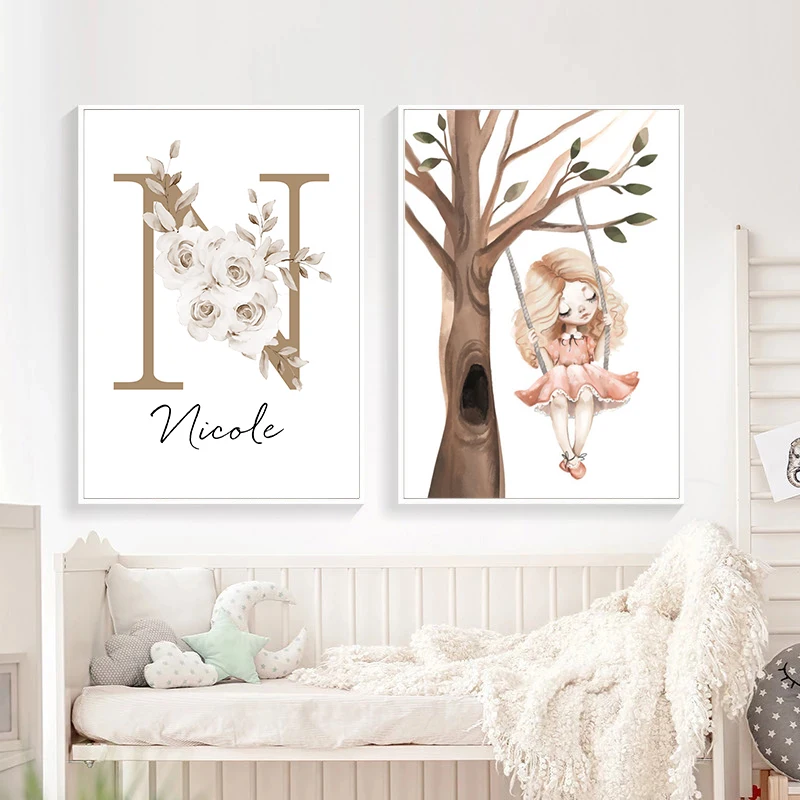 Настенный художественный постер с именем ребенка на заказ, для дево...