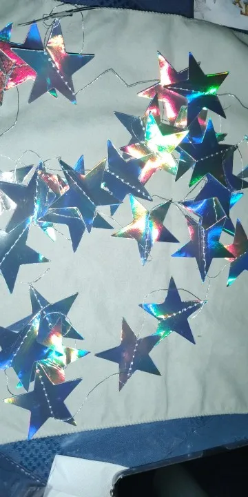 Купила за цент и монетки) Посылка дошла до Москвы довольно быстро. Гирлянда очень красивая, нитка прошита по звёздочкам, так что легко они не отвалятся. Сами звёздочки достаточно плотные и порадовала хорошая длина гирлянды) Мне очень понравилась))