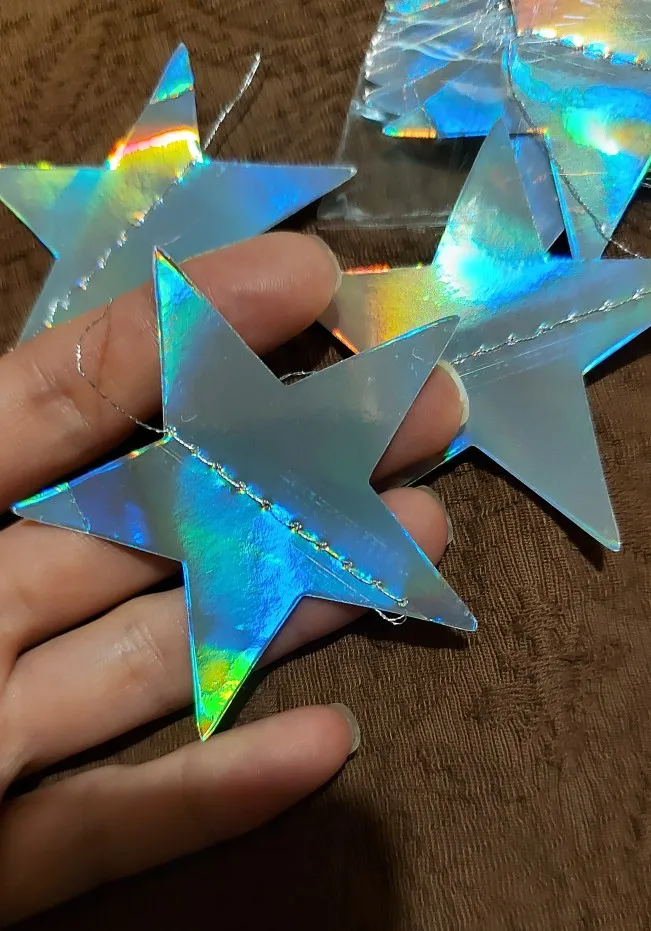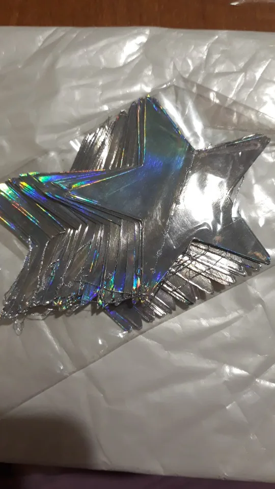 Звезды пришли не лазерные, а обычные серебреные. Очень жаль, что так не внимательно собирают посылки.