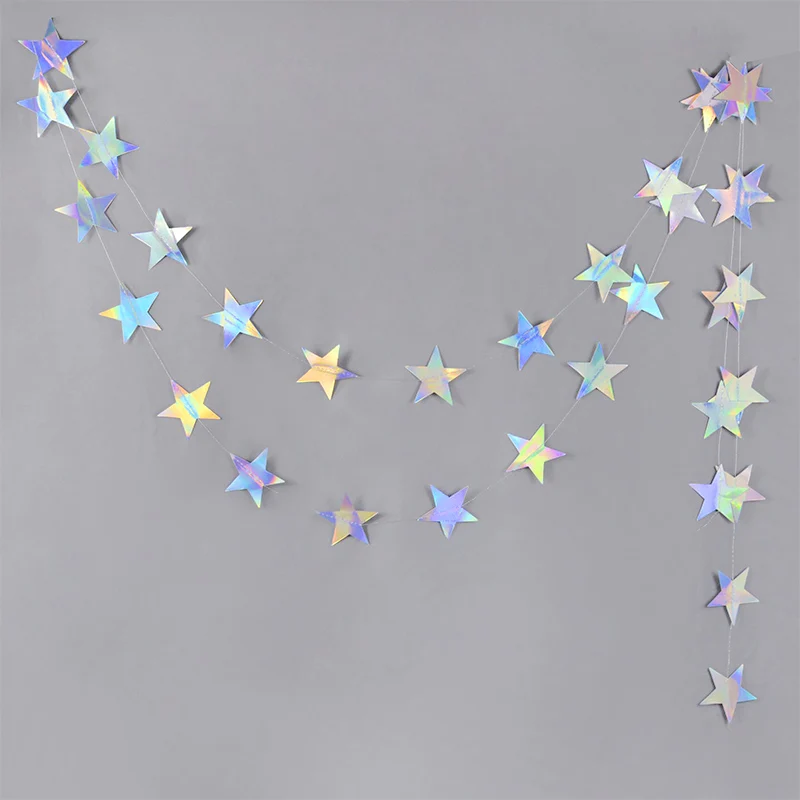 Лазерная гирлянда из серебристой бумаги со звездами, баннер, украшение для вечевечерние НКИ в честь Дня рождения, для девочек, мальчиков, для будущей мамы, свадьбы, Рождества, Настенный декор
