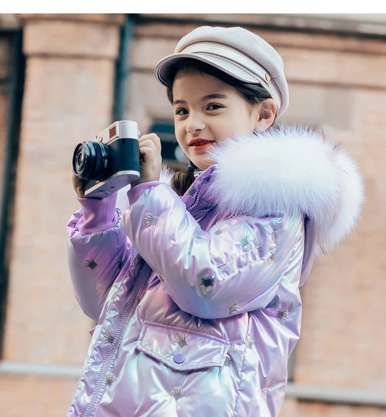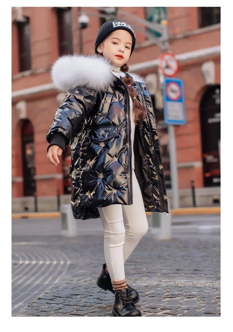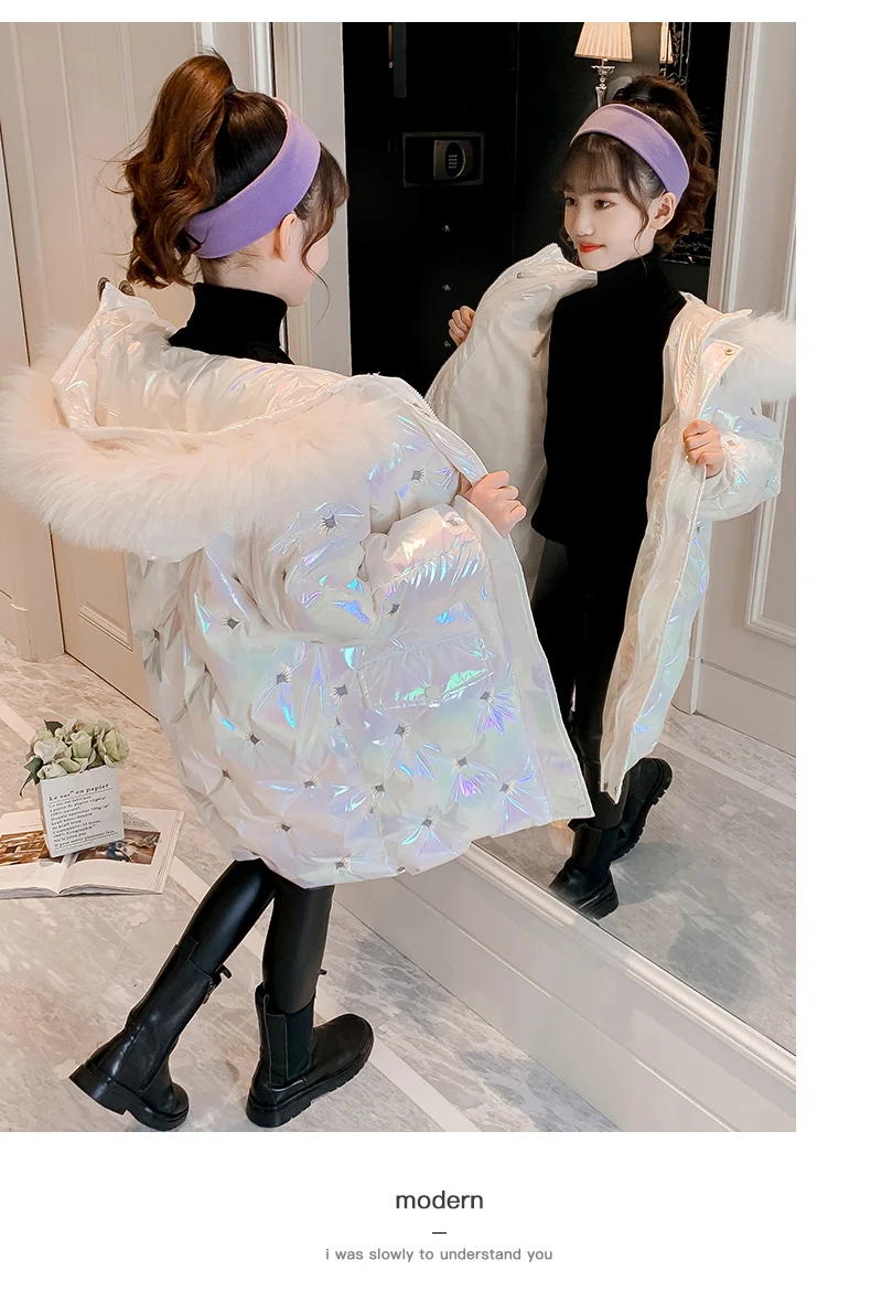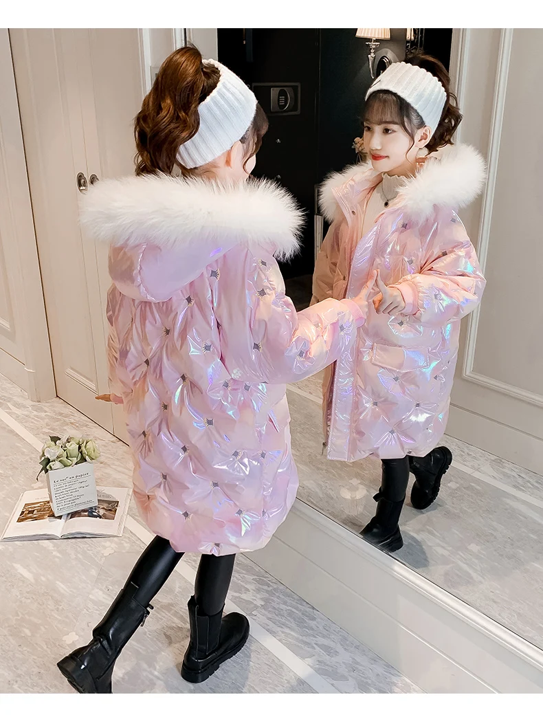 Зимнее хлопковое пальто с капюшоном и меховым воротником для девочек, детская теплая зимняя куртка средней длины с подкладкой, детская модная водонепроницаемая верхняя одежда TZ788