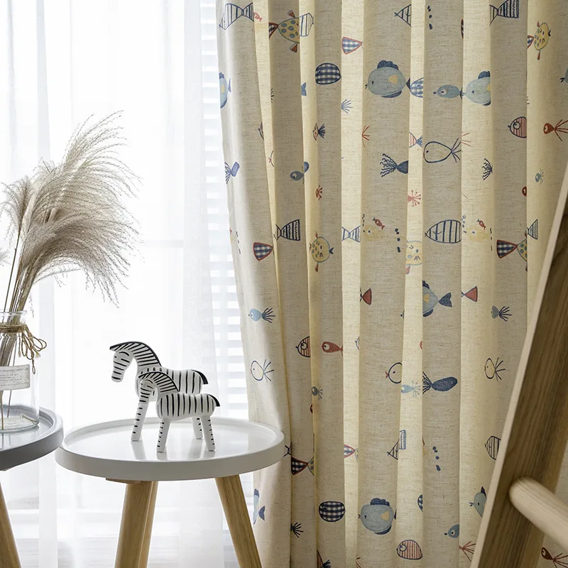 Занавески из хлопка и льна для детской спальни, занавески с принтом...