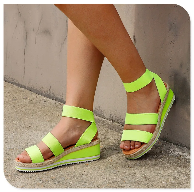 Женские босоножки на танкетке; Повседневные летние женские босоножки на платформе; Модная пляжная Нескользящая женская обувь с перекрестными ремешками; Разноцветная обувь