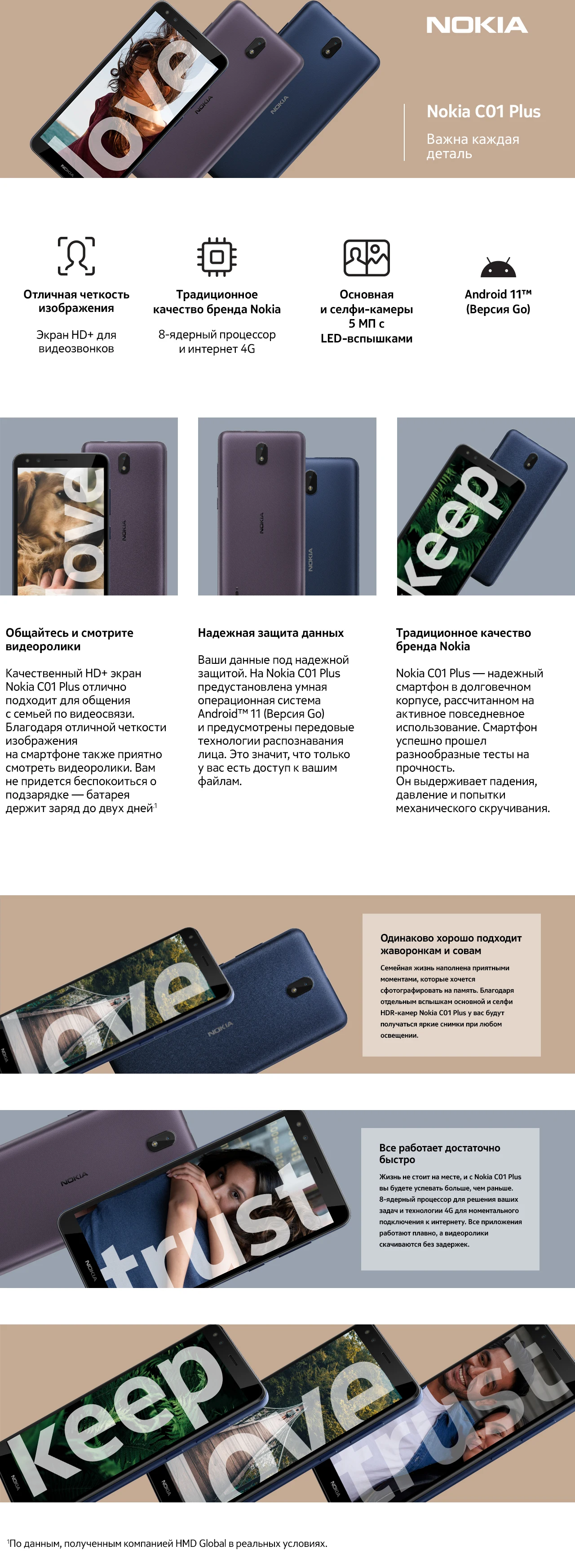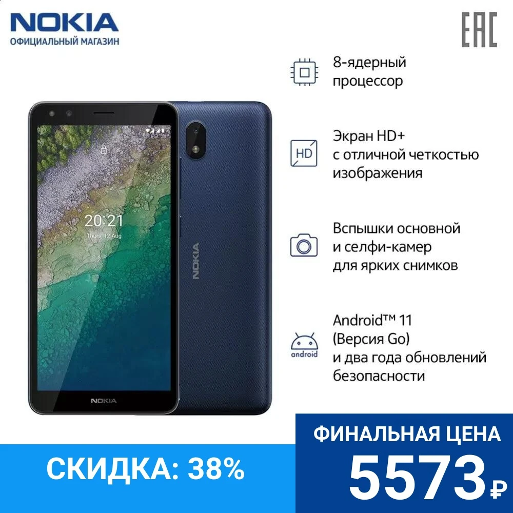 Смартфон NOKIA C01 PLUS DS TA-1383 BLUE 116, 5.45 18:9, 4x 1.6GHz+ 4x 1.2HGz, 8 Core, 1GB RAM, 16GB, 5Mpix5Mpix, 2 Sim