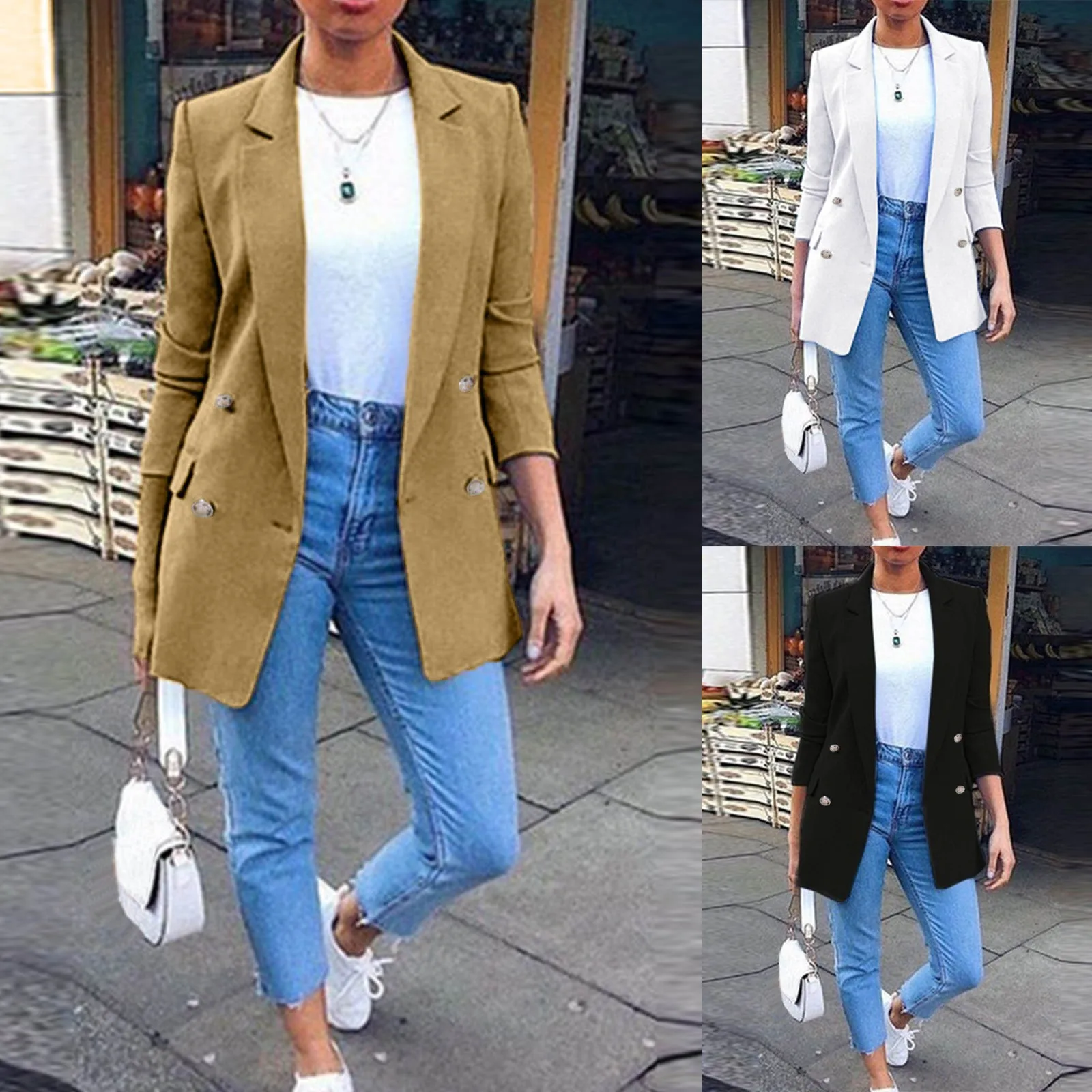 Женский облегающий блейзер с длинным рукавом, однотонный Блейзер средней длины с лацканами, деловой костюм для работы и офиса, 2021