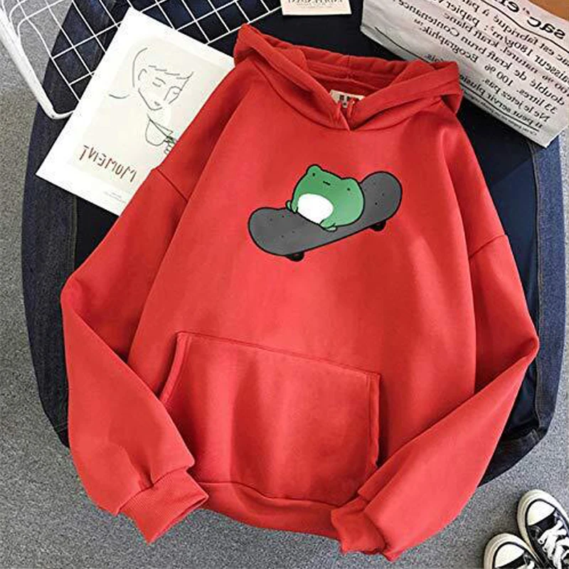 Милые толстовки с рисунком скейтборда лягушки, Модный женский пулов...