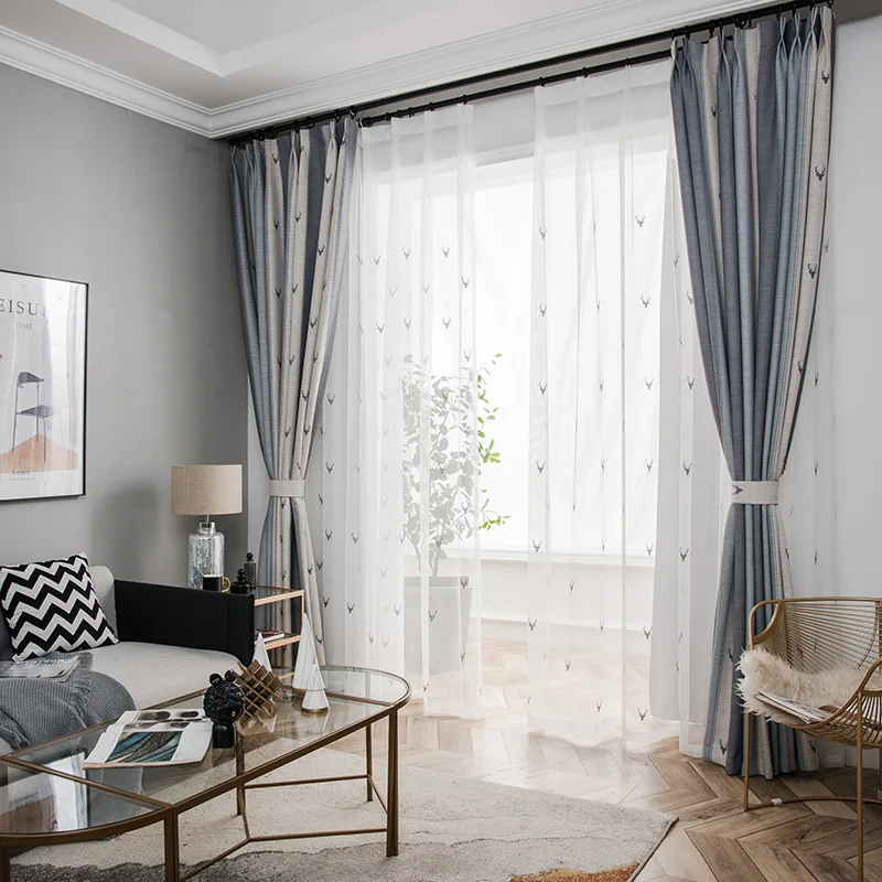 Шторы из хлопка и льна с вышивкой в виде американского оленя, роско...