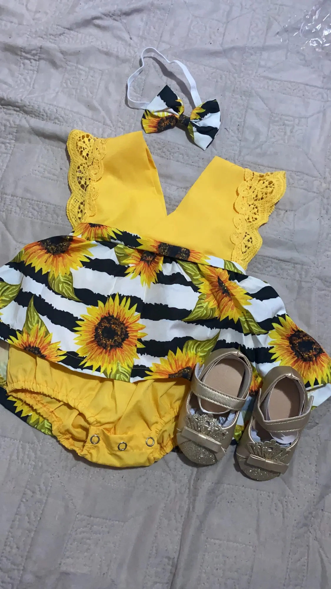 Кружевной комбинезон без рукавов с принтом подсолнуха для маленьких девочек, боди, платье + повязка на голову