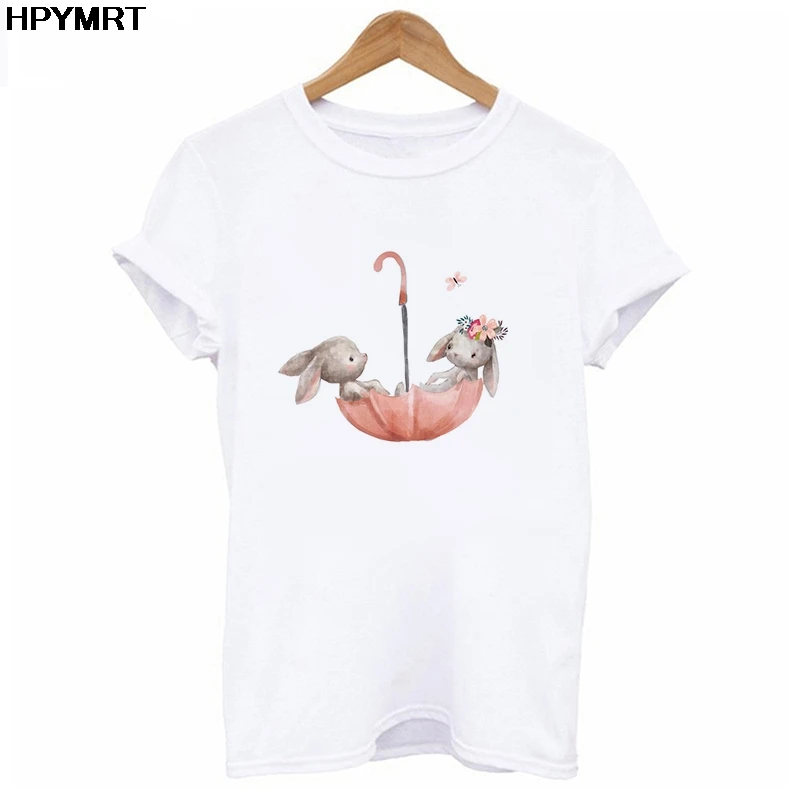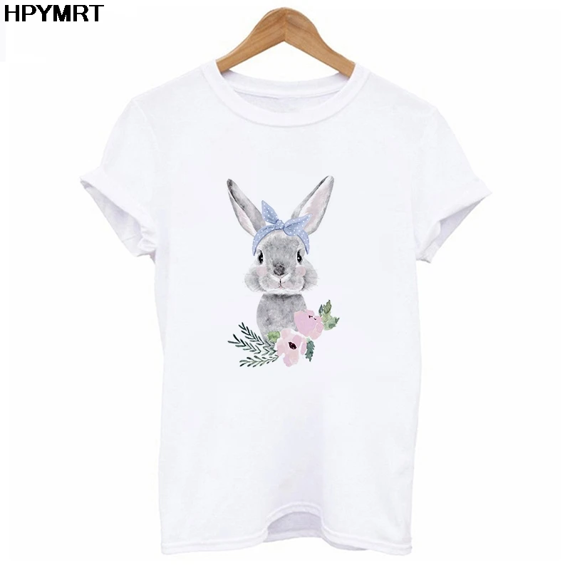 Футболка женская летняя с принтом кролика и коротким рукавом