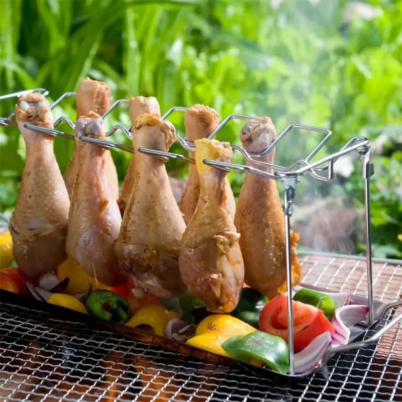 Инструмент для барбекю, большая емкость, нержавеющая сталь, куриная ножка, бедра, барабанная палочка, подставка для гриля, держатель для барбекю, нестандартный с лотком