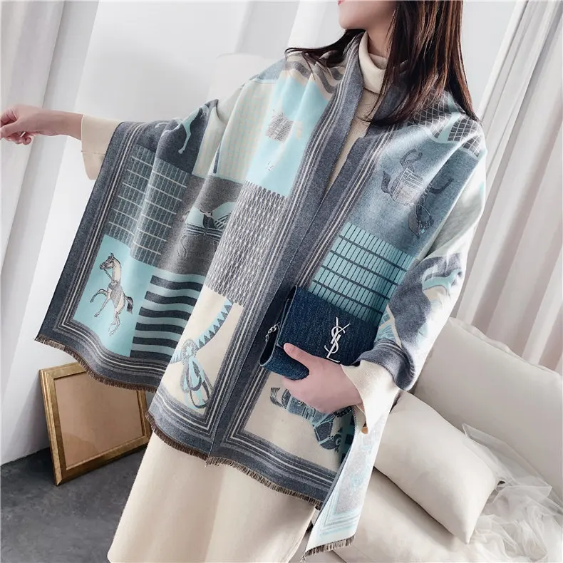 Зимнее кашемировое теплое одеяло из пашмины, шарфы с лошадью, женск...
