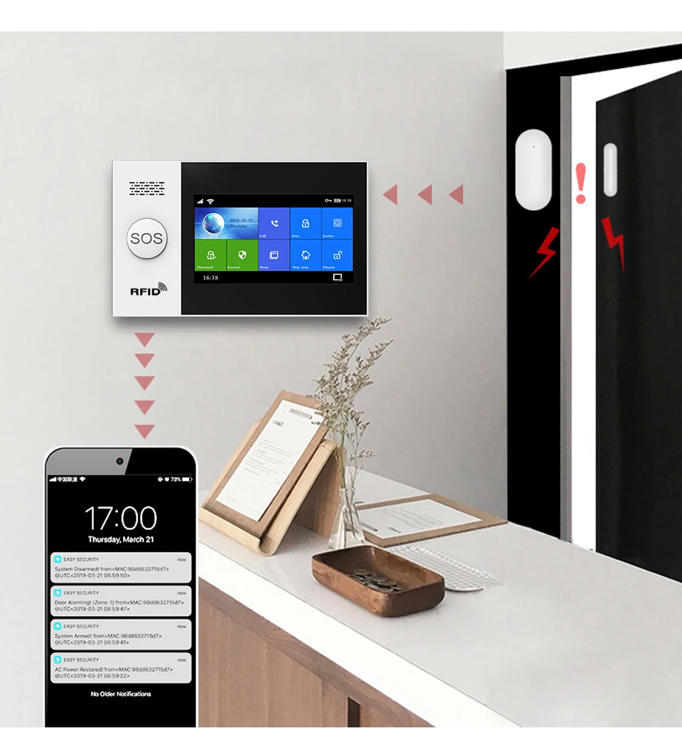 HIVA просто безопасная система сигнализации для домашней квартиры, GSM, Wi-Fi, умная охранная система, Комплект сделай сам с дверью и пассивным ИК-датчиком