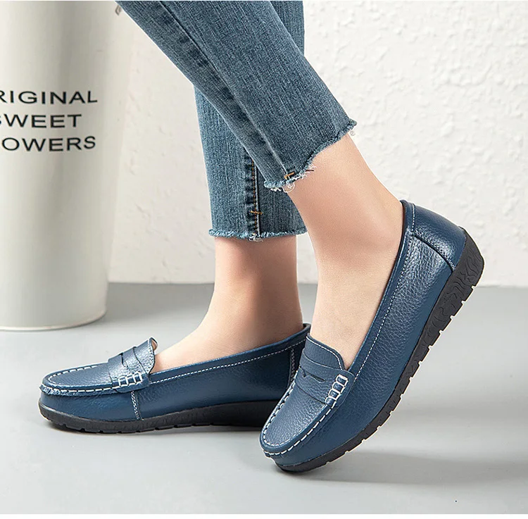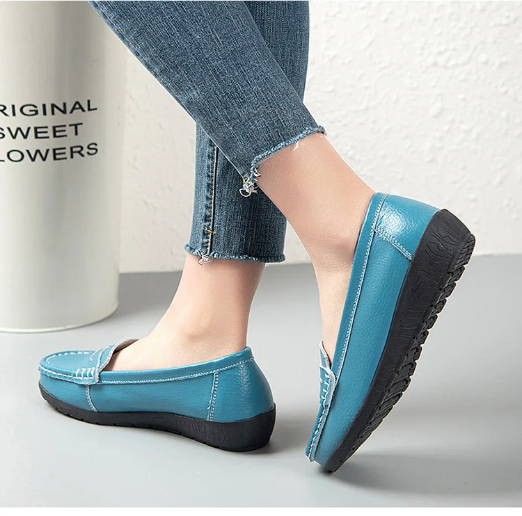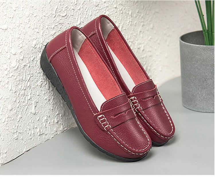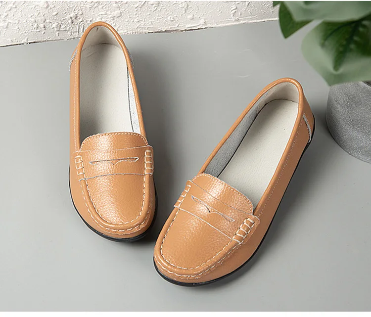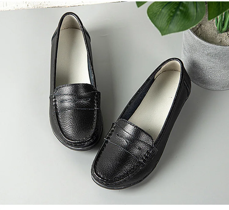 Туфли женские из натуральной кожи, мягкие лоферы на платформе, без застежки, повседневная обувь для медсестер, плоская подошва
