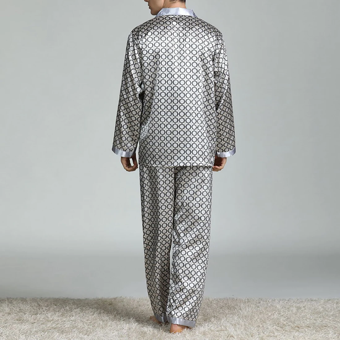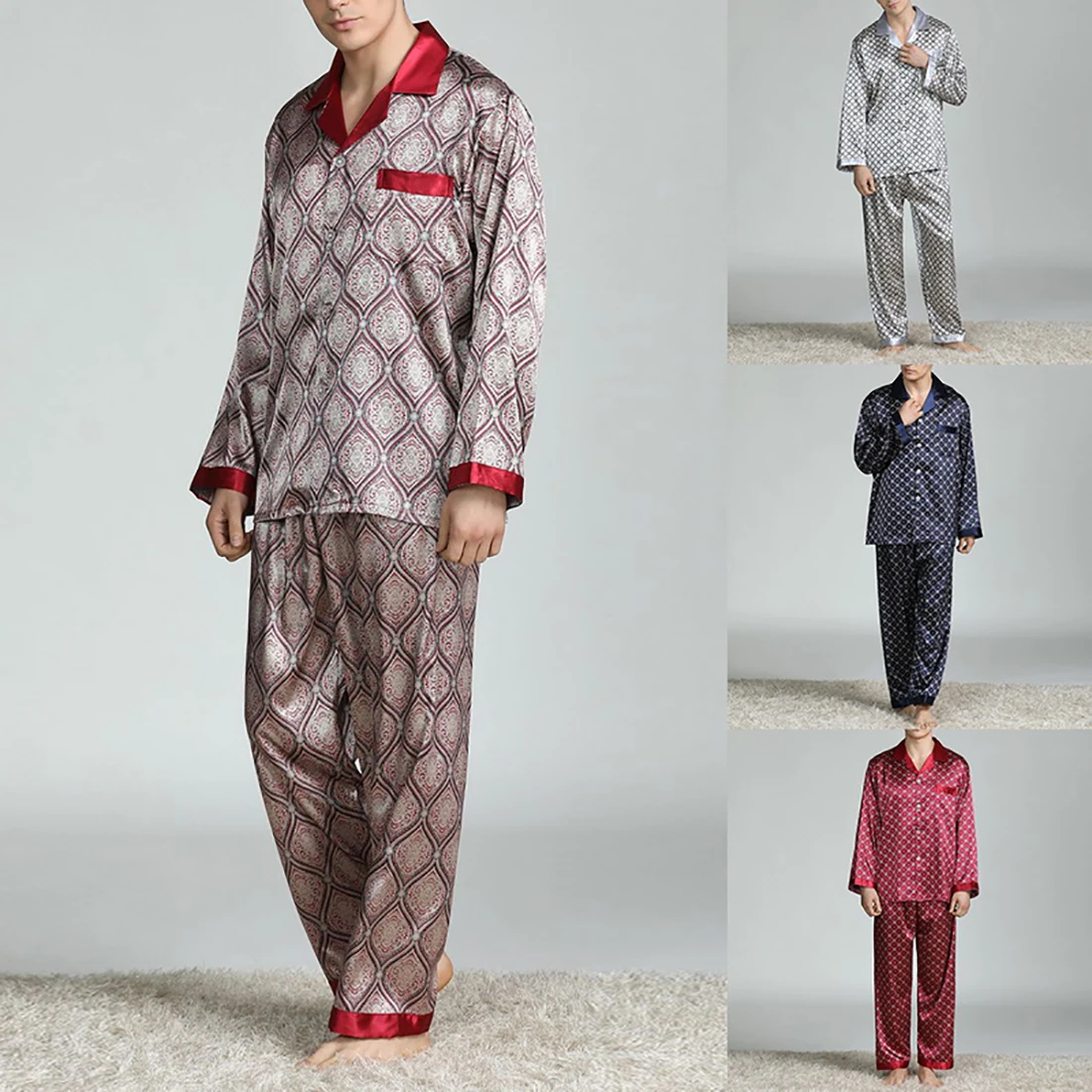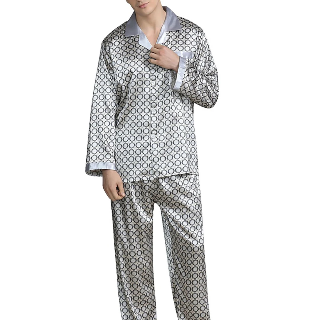 Пижамный комплект мужской шелковый, одежда для сна в современном стиле, ночнушка для дома, атласная на пуговицах, с длинным рукавом, мягкая уютная повседневная одежда для сна