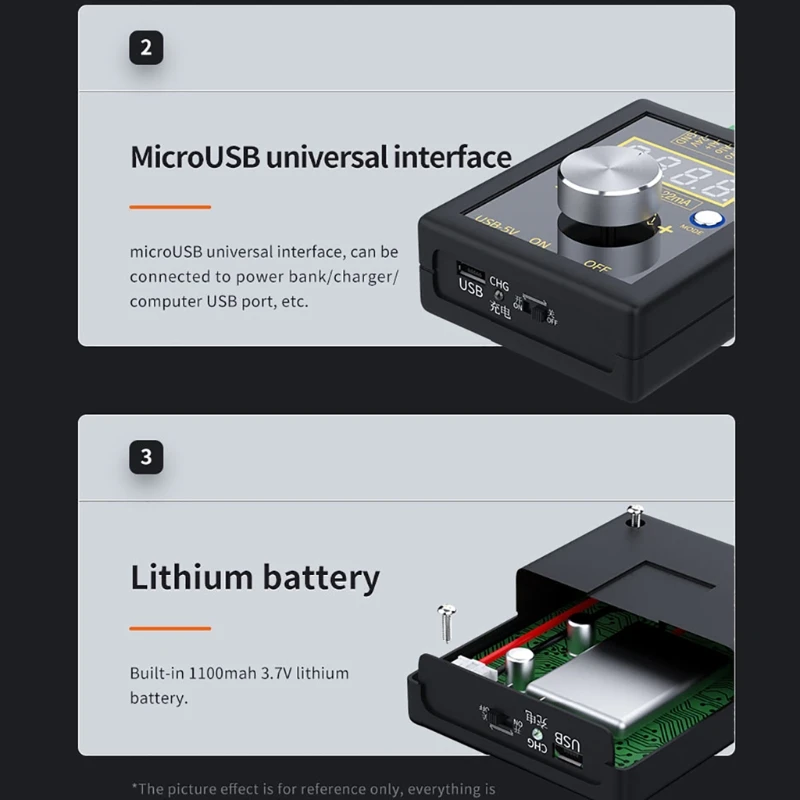 Особенности:Подключаемые клеммные блоки, безопасная и удобная проводка.4-разрядный высокой четкости цифровой светодиодной лампой яркость дисплея равномерная и возможность регулировки (на возраст от 1 года до 8 лет яркости).Алюминиевая крышка ручки, гальванические кнопки, Высококачественная пленка, индикатор зарядки, выключатель батареи.3 способа питания: внешний источник питания, DC5V micro USB, bulit-in литиевая батарея (только если вы выбираете перезаряжаемый тип, вы можете иметь bulit-in литиевая батарея режим зарядки). До тех пор, пока все способы работы, также могут быть подключены одновременно.Внешний источник питания постоянного тока 15-30 в, который может поделиться источником питания 24 В ПЛК и другого оборудования.Универсальный интерфейс MicroUSB, может быть подключен к источнику питания, зарядному устройству, usb-порту компьютера и так далее.На экране нормальной работы, сохраните напряжение и текущее значение, удерживайте кодировщик, после освобождения кнопки OK, экран отображает «...», что означает, что экономия успешна. Перезагрузка непосредственно отображает сохраненное значение, нет необходимости каждый раз регулировать параметры при включении машины, что очень практично.Легко носить и маленький размер, лучший выбор для отладки на месте.Характеристики:Материал: АБС-пластикЦвет: черныйВыходное напряжение: 0-10 В, 2-10 В, 0-5 В, 1-5 В, 0-3,3 ВВ настоящее время Выход: 0-22mA, 0-20mA, 4-20mAТип: 1-2 (опционально)Метод зарядки: bulit-in литиевая батарея (только перезаряжаемый тип), внешний источник питания, DC5V micro USBБатарея: 1 * литиевая батарея Батарея, 3,7 V, 1100 мА · ч (только в том случае, перезаряжаемого типа входит в комплект)Размер изделия: 89*69*28 мм/3,5*2,7 * 1.1in