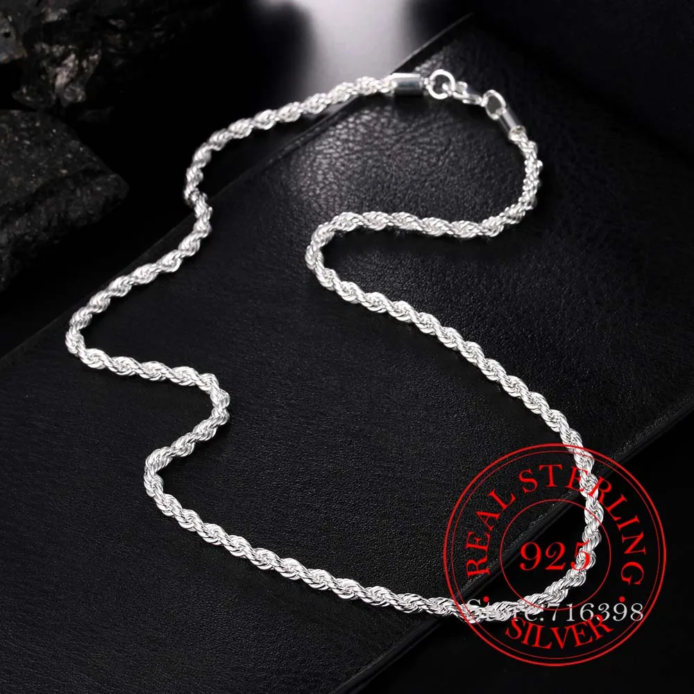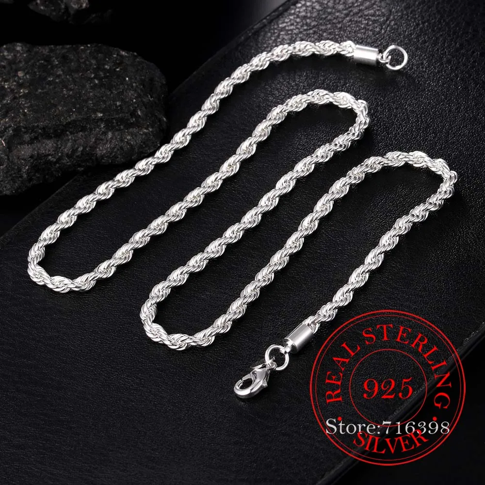 Ширина 4 мм! Реальные 100% 925 стерлингового серебра для мужчин Rope Chain Мода унисекс; Симпатичные вечерние свадебный подарок Серебряная цепочка Ожерелье для мужчин ювелирные изделия