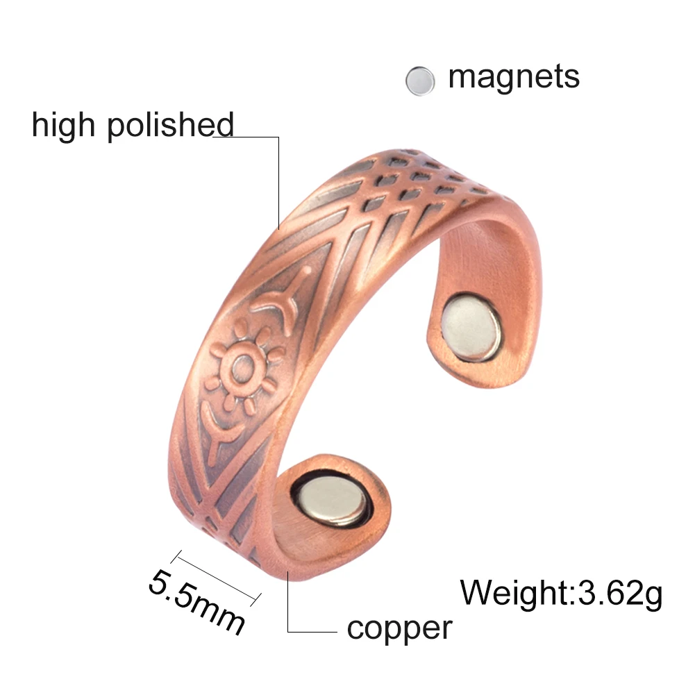 Чистый медный Магнитный кольца для мужчин и женщин 6 мм здоровья энергии с накатанной головкой регулируемые манжеты кольцо для мужчин свадебное кольцо на палец кольцо минималистский ювелирные изделия