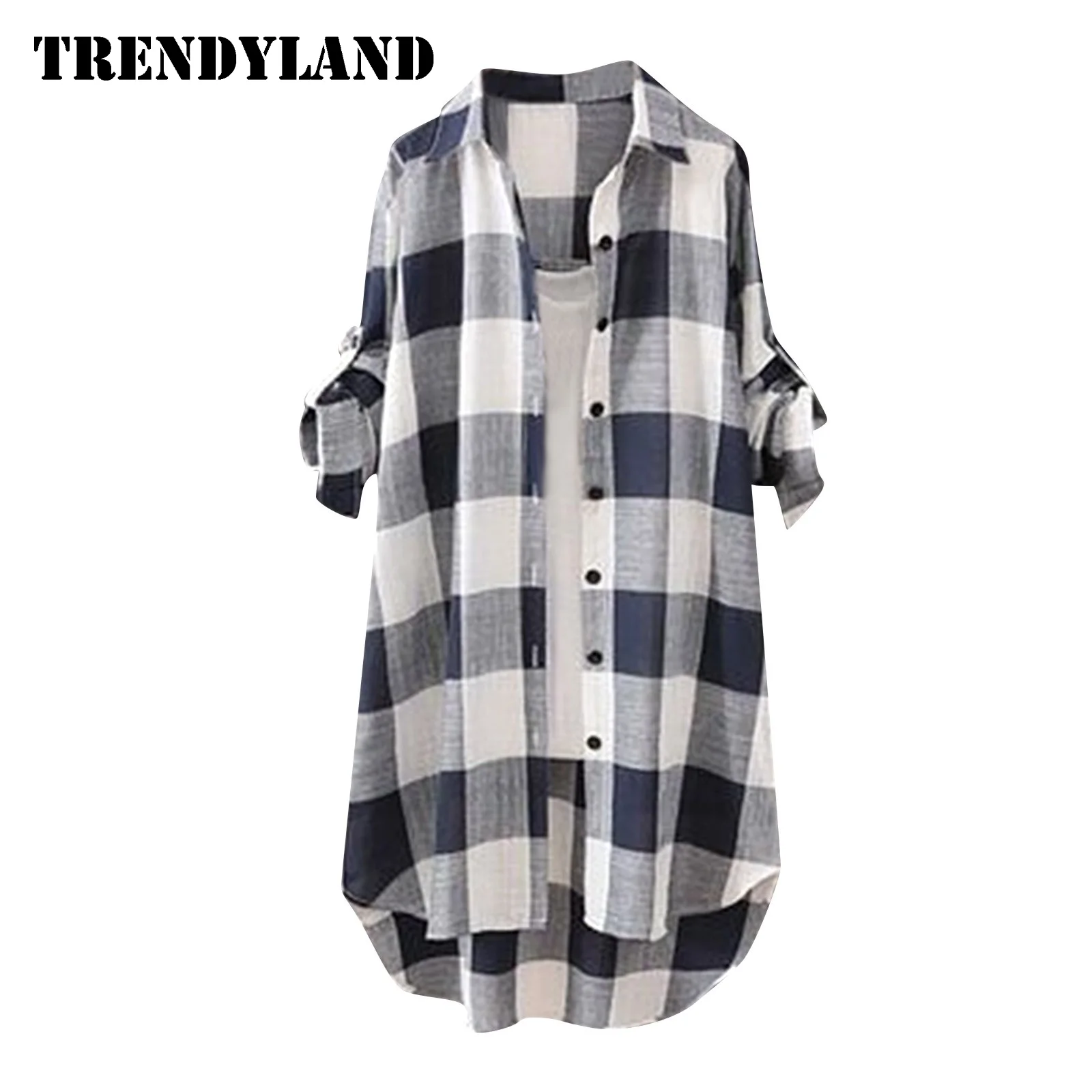 Женская длинная рубашка из хлопка и льна, в черно-белую клетку