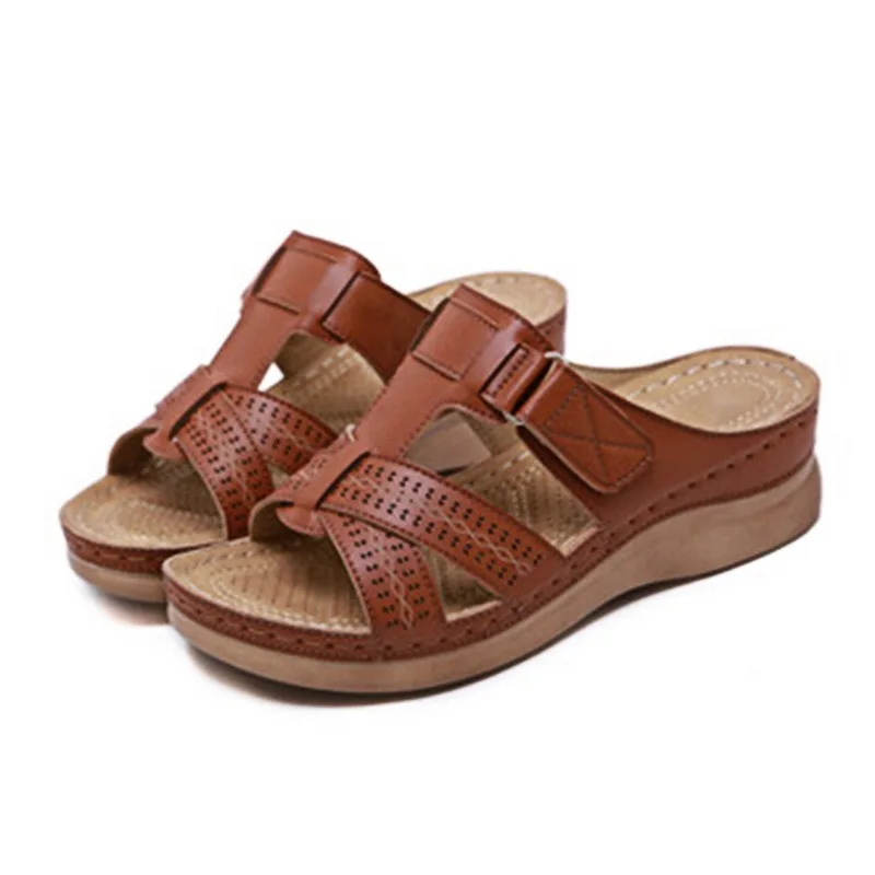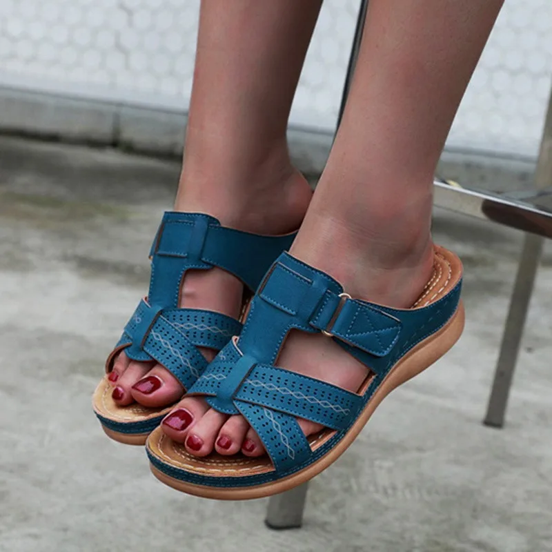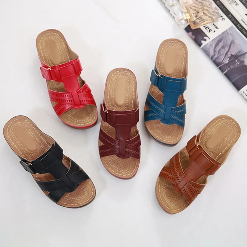 Сандалии женские ортопедические с открытым носком, мягкие удобные босоножки с коррекцией каблука, винтажные Нескользящие дышащие, для ходьбы, лето