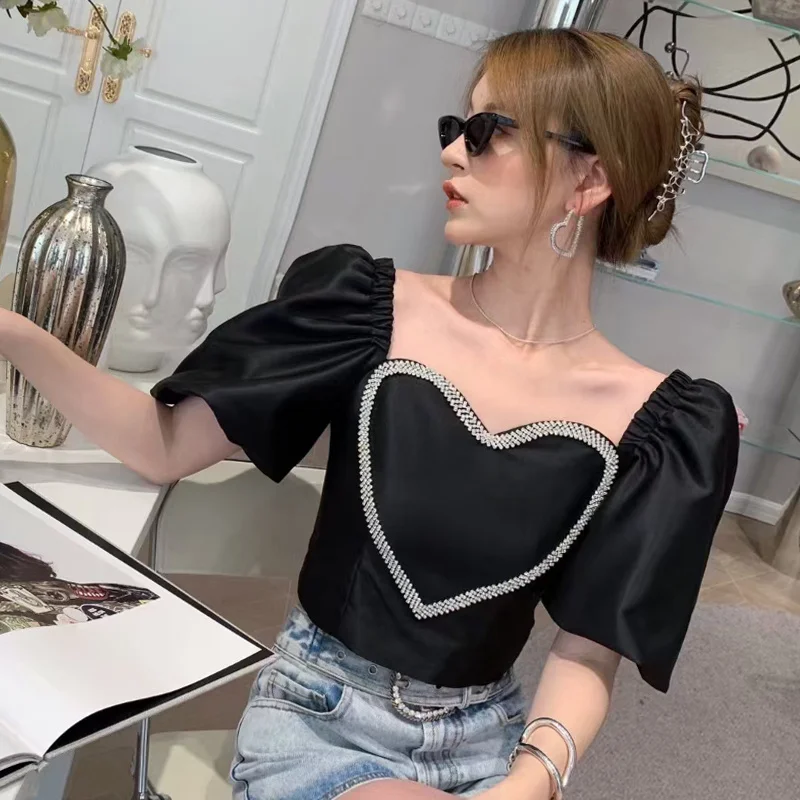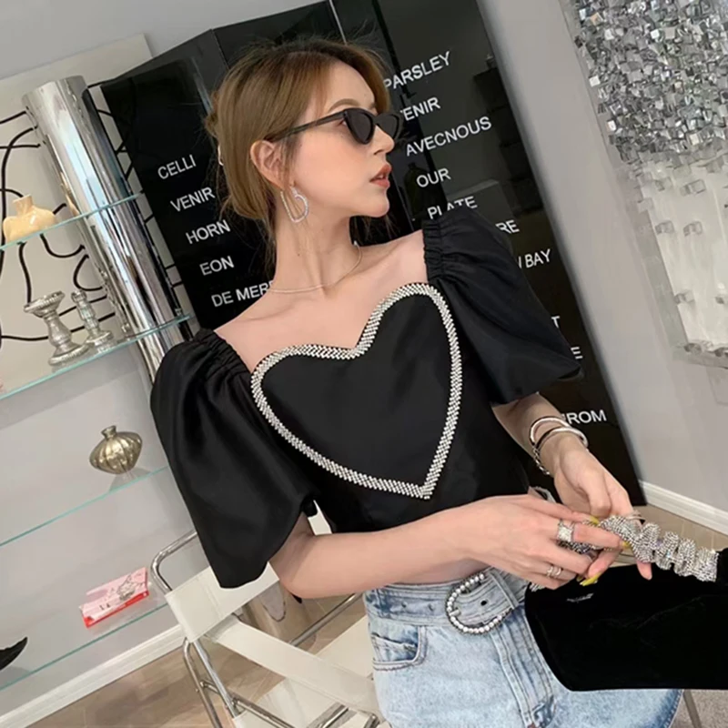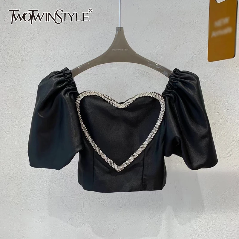 Женские повседневные рубашки TWOTWINSTYLE, лоскутные блузки с v-образным вырезом и пышными короткими рукавами для похудения, Новинка лета 2021