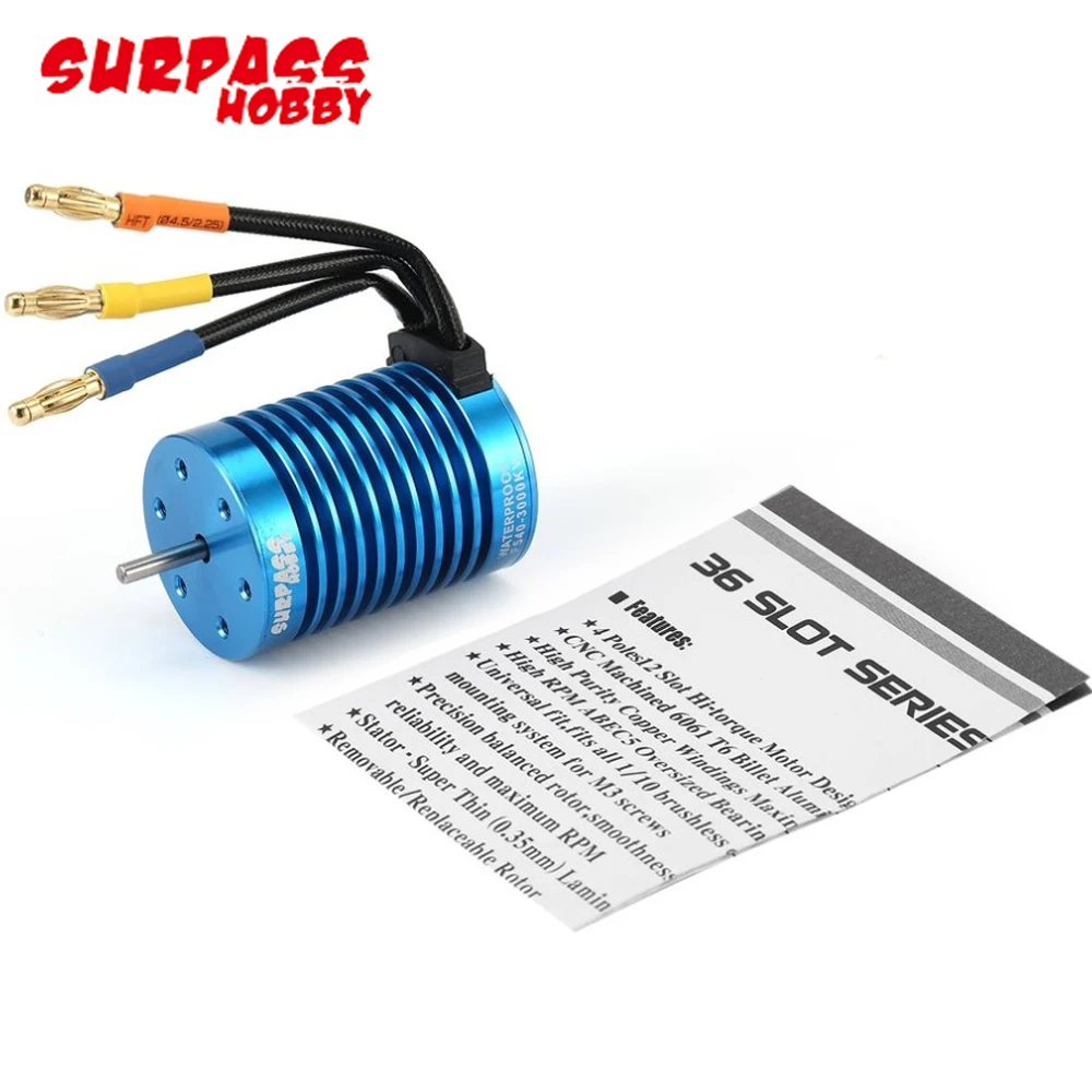 Особенности:4-полюсный 12-слотовый двигатель с высоким крутящим моментомВысокочистые медные обмотки повышают эффективностьПрецизионный дизайн для максимального преобразования энергииТочный сбалансированный ротор, плавность для лучшей надежности и максимальных оборотовПодходит для радиоуправляемой машины масштаба 1/10Кв характеристики двигателя:Бренд: SURPASS HOBBYРазмер: 540Вт: 820 ВтМаксимальное напряжение: <18 вМакс. Ампер: 45 АКВ (об/мин/Вольт): 3000 квМакс. Об/мин: 50000Диаметр: 36 ммДлина: 50 ммДлина вала: 15 ммДиаметр стержня: 3,175 ммТип штекера: золотой Банановый штекер 4 ммТехнические характеристики двигателя 3300KV:Бренд: SURPASS HOBBYРазмер: 540Вт: 820 ВтМаксимальное напряжение: <17 вМакс. Ампер: 47 АКВ (об/мин/Вольт): 3300квМакс. Об/мин: 50000Диаметр: 35,8 ммДлина: 50 ммДлина вала: 15 ммДиаметр стержня: 3,175 ммОтверстие для винта: 6 * M3Тип штекера: золотой Банановый штекер 4 ммХарактеристики двигателя 3930KV:Бренд: SURPASS HOBBYРазмер: 540Вт: 820 ВтМаксимальное напряжение: <13 вМакс. Ампер: 60 АКВ (об/мин/Вольт): 3930квМакс. Об/мин: 50000Диаметр: 35,8 ммДлина: 50 ммДлина вала: 15 ммДиаметр стержня: 3,175 ммТип штекера: золотой Банановый штекер 4 ммХарактеристики двигателя 4370KV:Бренд: SURPASS HOBBYВт: 820 ВтМаксимальное напряжение: <12 ВМакс. Ампер: 66аКВ (об/мин/Вольт): 4370квМакс. Об/мин: 50000Диаметр: 36 ммДлина: 50 ммДлина вала: 15 ммДиаметр стержня: 3,175 ммРазъем: золото 4 ммТехнические характеристики ESC:Ток: 45 АИмпульсный ток: 180 АБатарея: 2 ~ 3 ячейки Lipo батарея, 4 ~ 9 ячеек NiMH батареяВыход BEC: 5,8 В/3 АВилки источника питания: T-образный штекерШтекеры двигателя: гнездовой штекер типа «банан» 4 ммРазмер: 44*35*32 мм (измерение без кабеля)