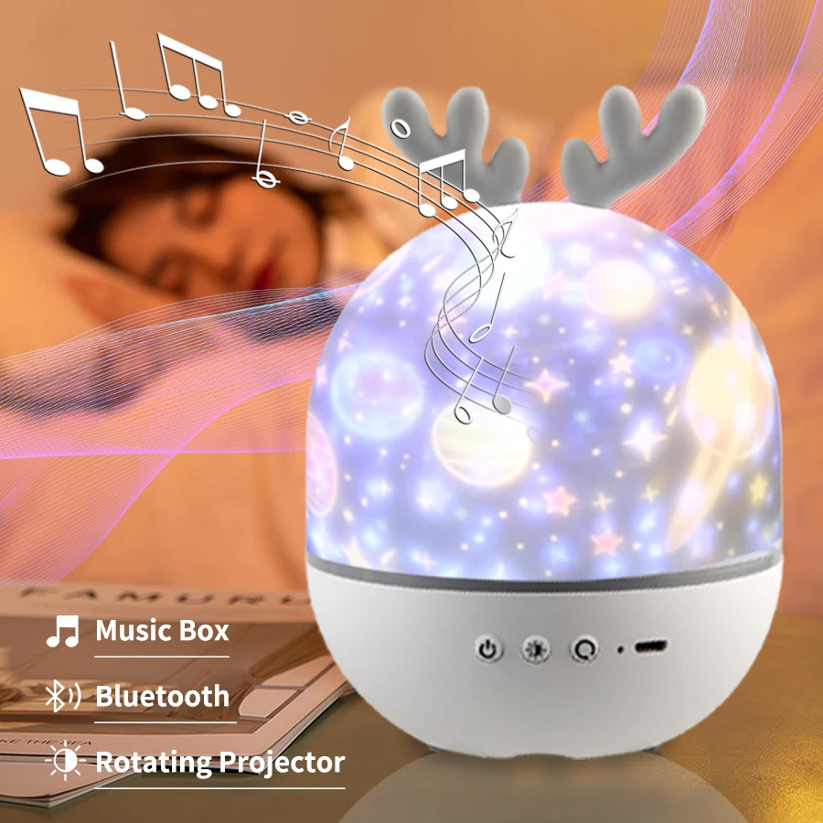 Это поможет ему преодолеть Боязнь Темноты, создать успокаивающую среду и подарит ребенку тепло и счастье.Сменная пленка, встроенные bluetooth-колонки, просто подключите мобильные телефоны, планшеты и другие Bluetooth устройстваВы можете наслаждаться фантастической проекцией и музыкой!