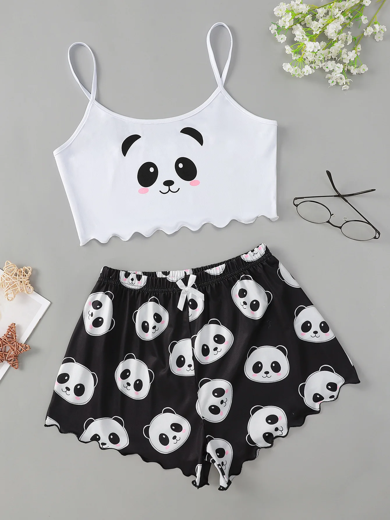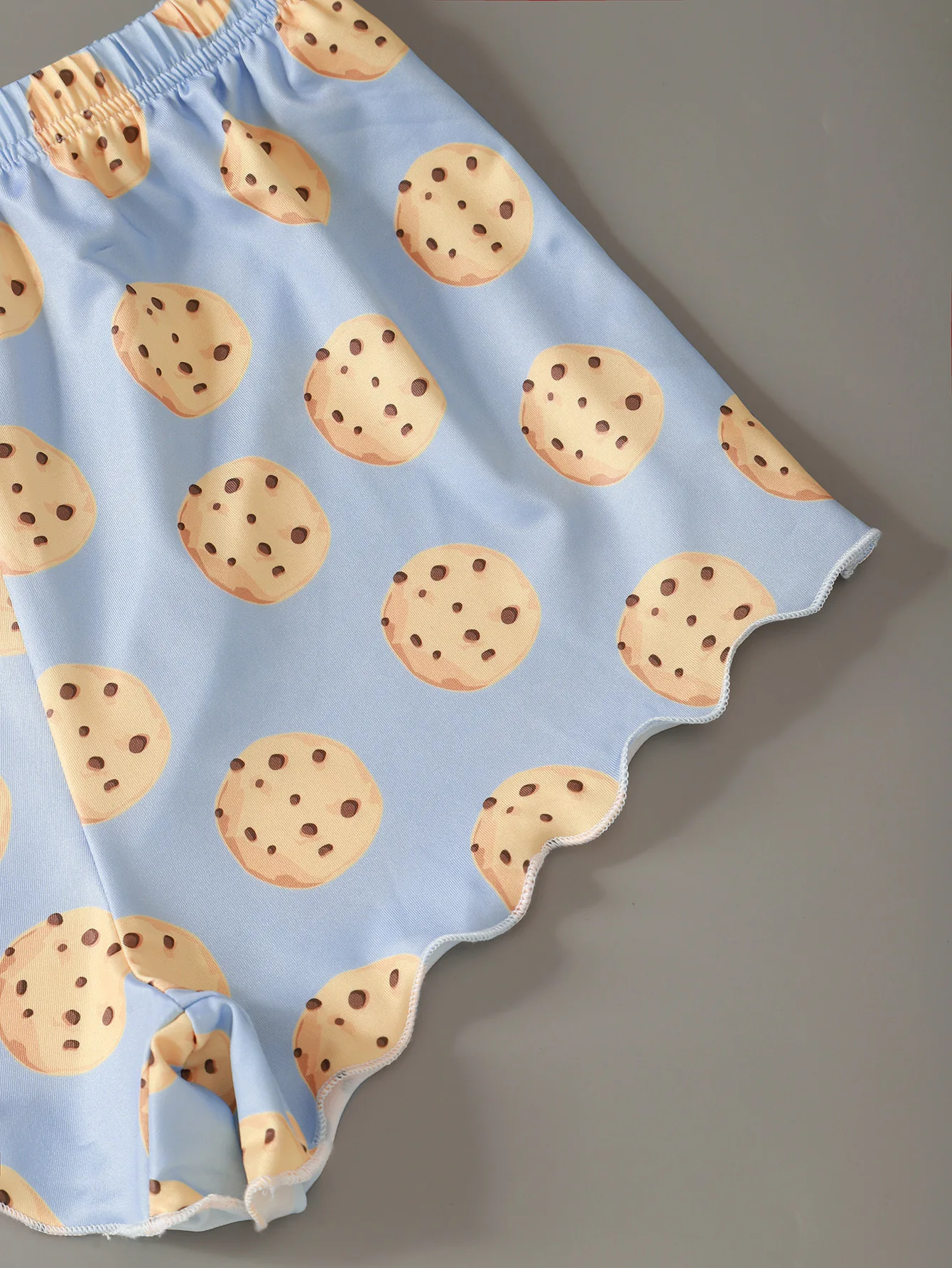 Летний пижамный комплект, милая печать печенья для женщин, шорты с ...