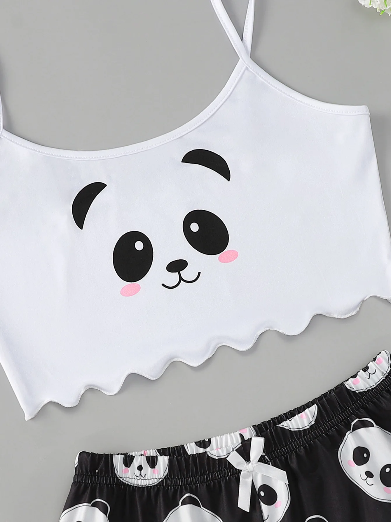 Пижамные комплекты с мультяшным принтом, женские пижамы на бретелях...
