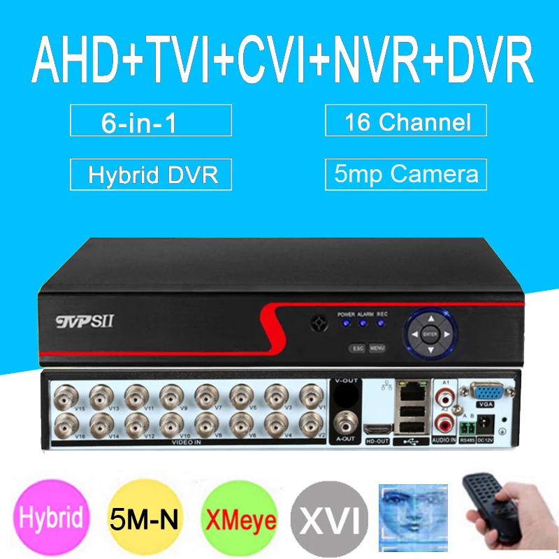 Аналог:16 * 5M-N;(Камера AHD + камера TVI + камера CVI + 960H/D1 одновременно)
