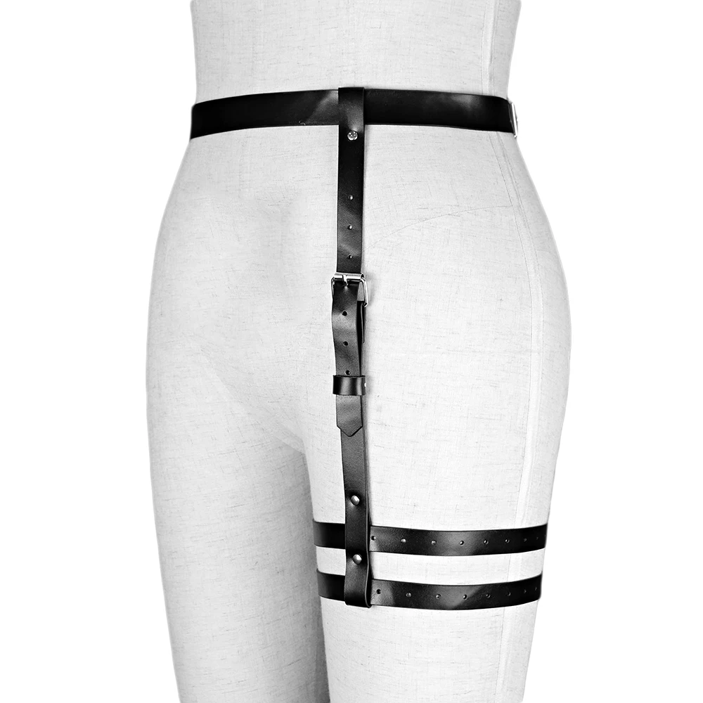 UYEE леди Пикантные ботфорты кожаная упряжь, в стиле панк, готика с креплением на талии и ноге подвязки Для женщин белье ремень ажурный просвечивающий нательный комбинезон бондаж ремень-подвязка