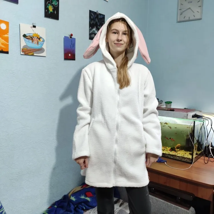 Soooooo симпатичный! Плотный, теплый, мягкий и удобный! Это хорошее качество, я просто не могу получить достаточно. Я 5'1 (154 см), и большие останавливаются чуть выше колен, хотел бы я купить изделие среднего размера, но я немного забеспокоился и хотел бы, чтобы оно было слишком длинным, чем слишком коротким (: