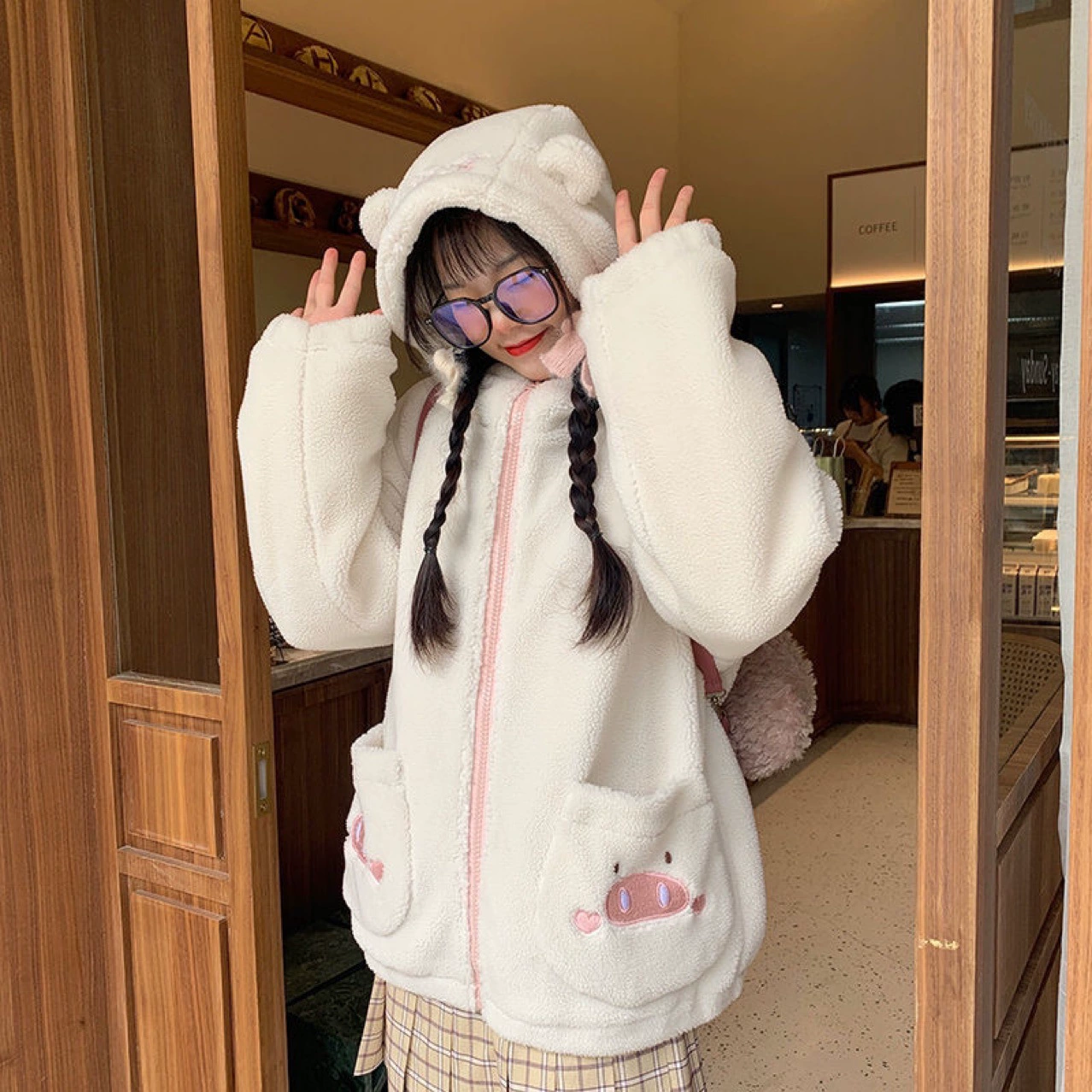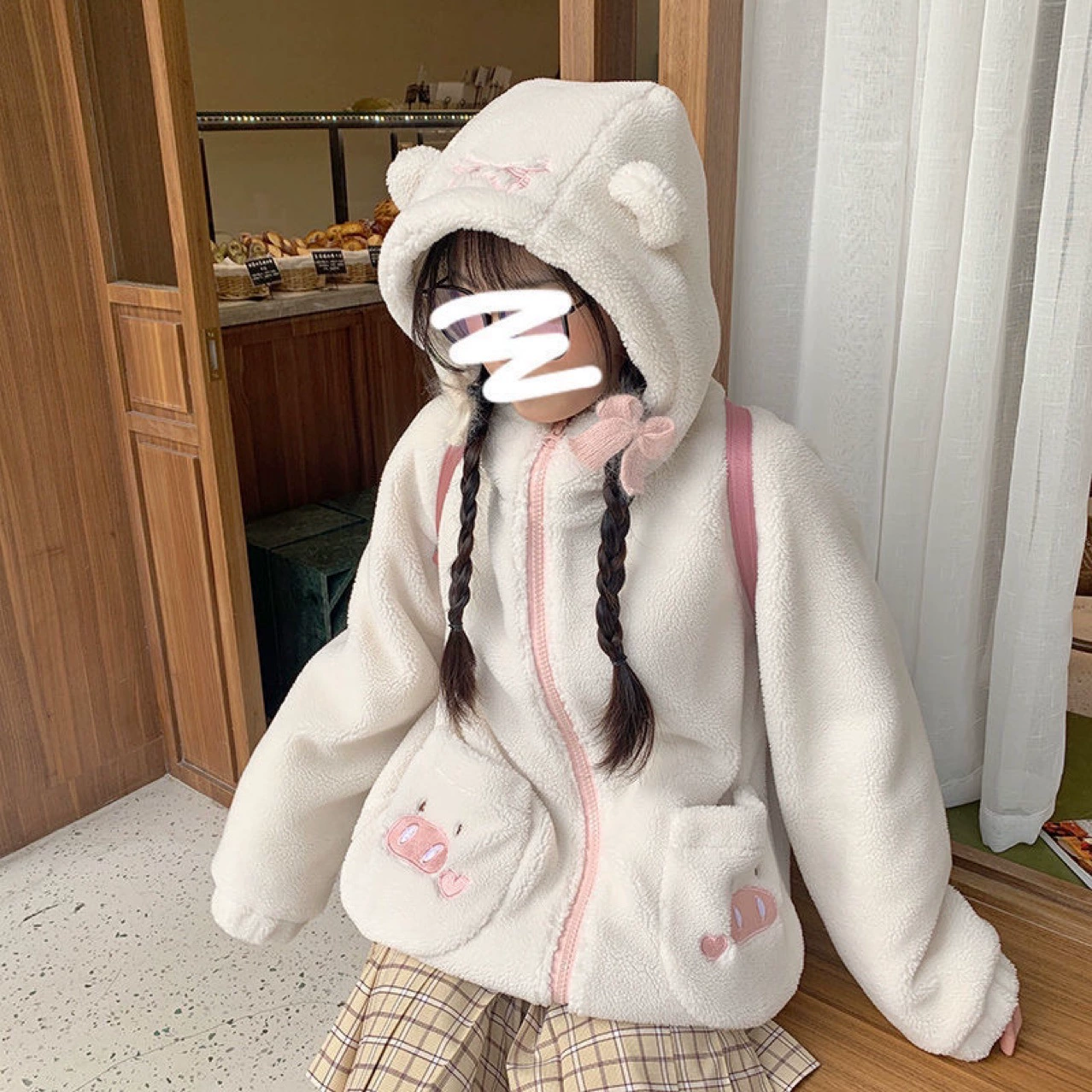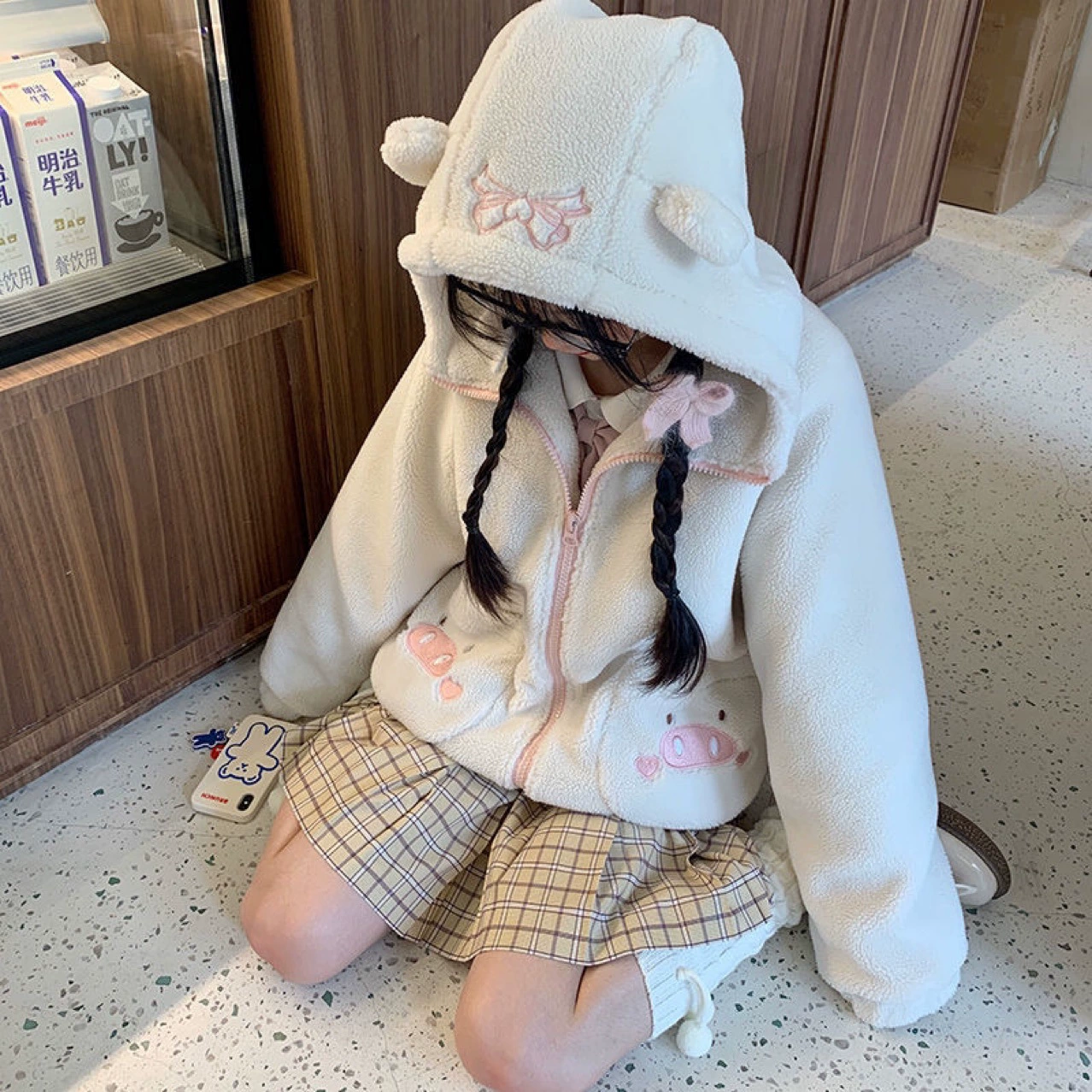 Женская Осенняя теплая толстовка с капюшоном, с заячьими ушками