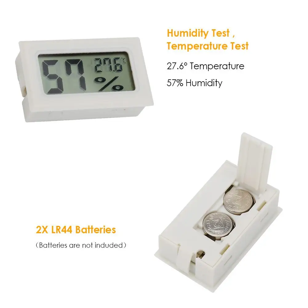 Мини цифровой ЖК-измеритель температуры и влажности термометр гигрометр комнатный датчик температурыХарактеристики:Тип: электронный термометр и гигрометрМатериал: АБС-пластикРазмер: 49*28*15 мм/1,93*1,1*0,59"Цвет: черный/белыйИзмерение влажности: 10% RH-99%RHТочность влажности: ± 5%Разрешение дисплея влажности: 1% RHДиапазон измерения температуры: - 50 ~ + 70 ℃Точность температуры: ± 1Разрешение дисплея температуры: 0,1Операционной Напряжение: 2*1,5 V кнопка LR44 Батарея (не включает в себя Батарея)ЖК-дисплей Размер: 3,6*1,7 см/1,4 * 0.65in (прибл.)Примечания:1. Из-за различных настроек монитора и светильник эффект, фактический цвет элемента может быть s светильник ly отличается от цвета, представленного на снимках. Спасибо!2. Возможны незначительные отклонения в измерениях из-за ручного измерения.