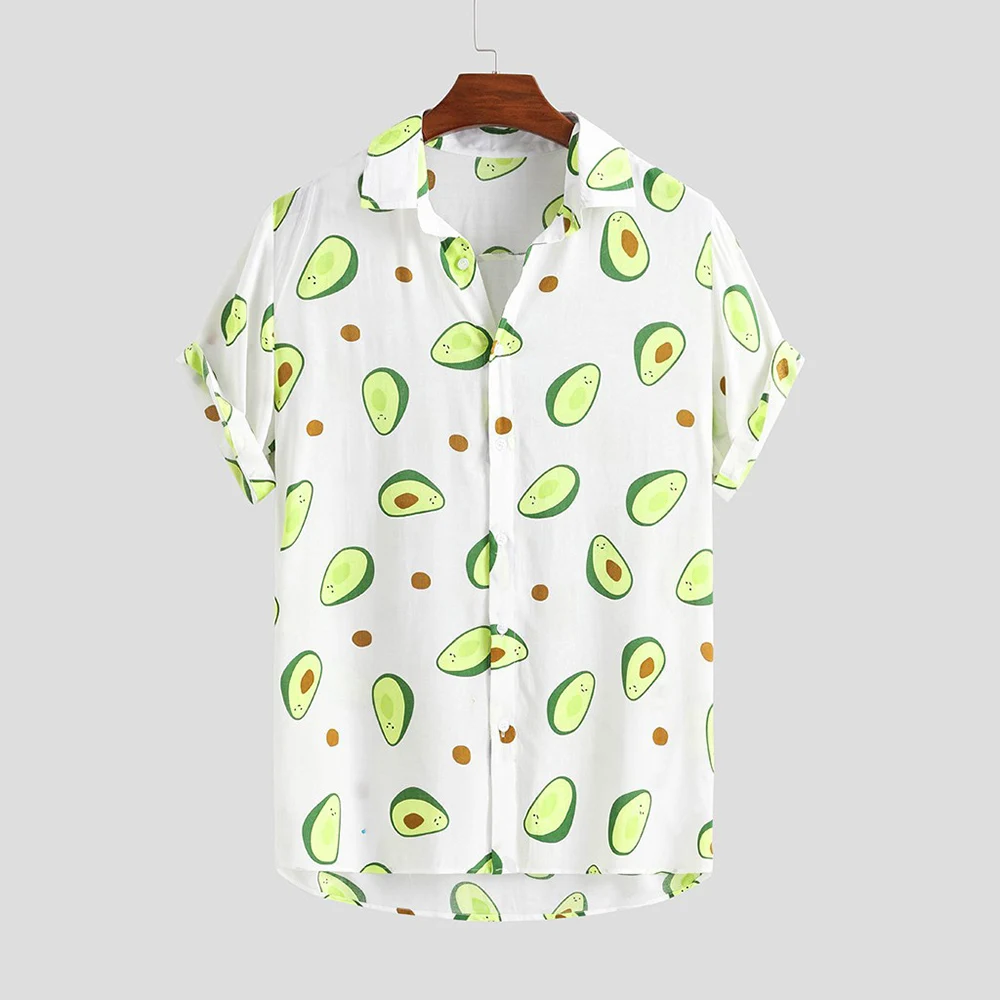 Мужская Повседневная рубашка, с принтом авокадо, гавайская пляжная одежда, мужская блузка с коротким рукавом, повседневный Топ, корейская модная одежда, 2021