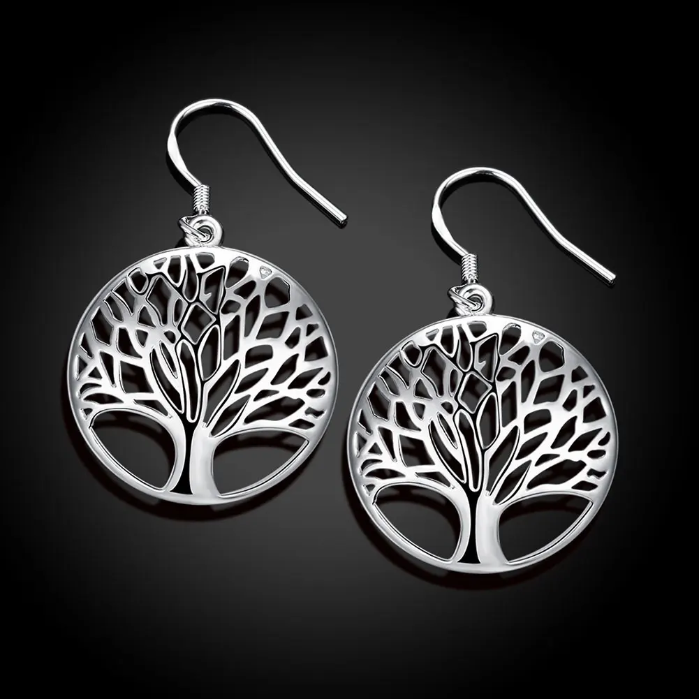 Женские серьги с деревом жизни, круглые серьги с вырезами, 925