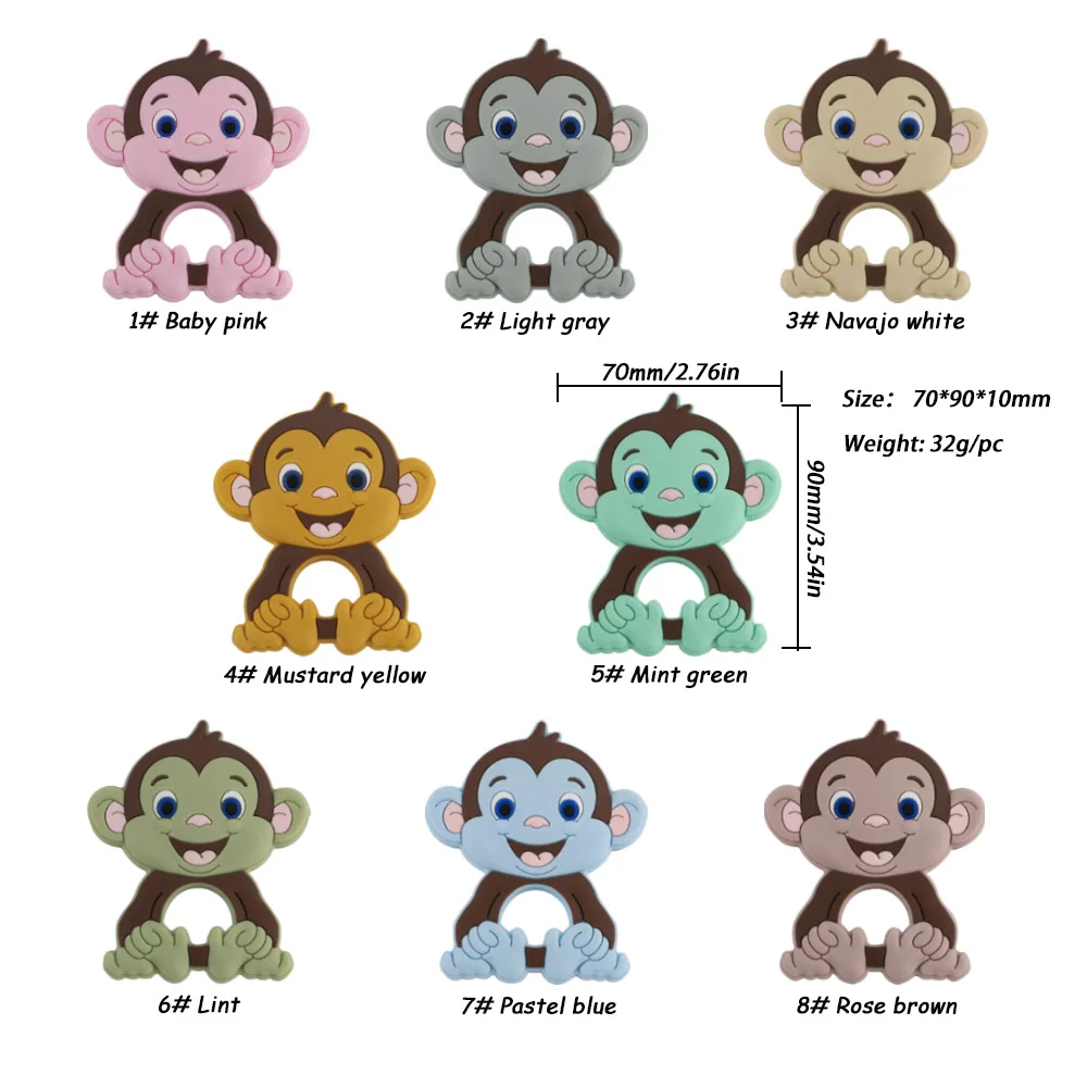 5 шт., силиконовые бусины в виде обезьяны для зубов