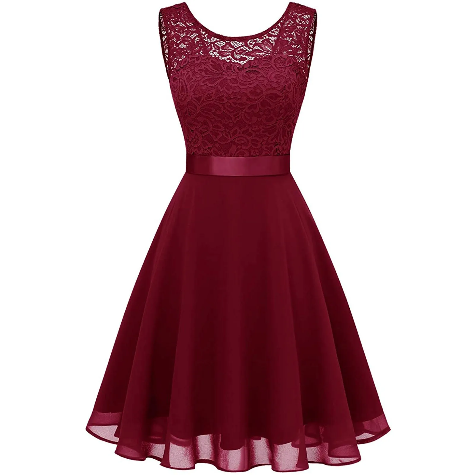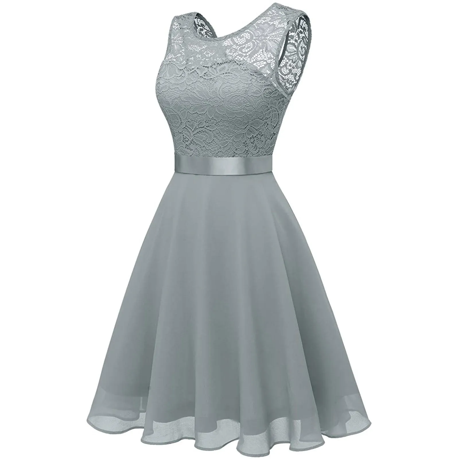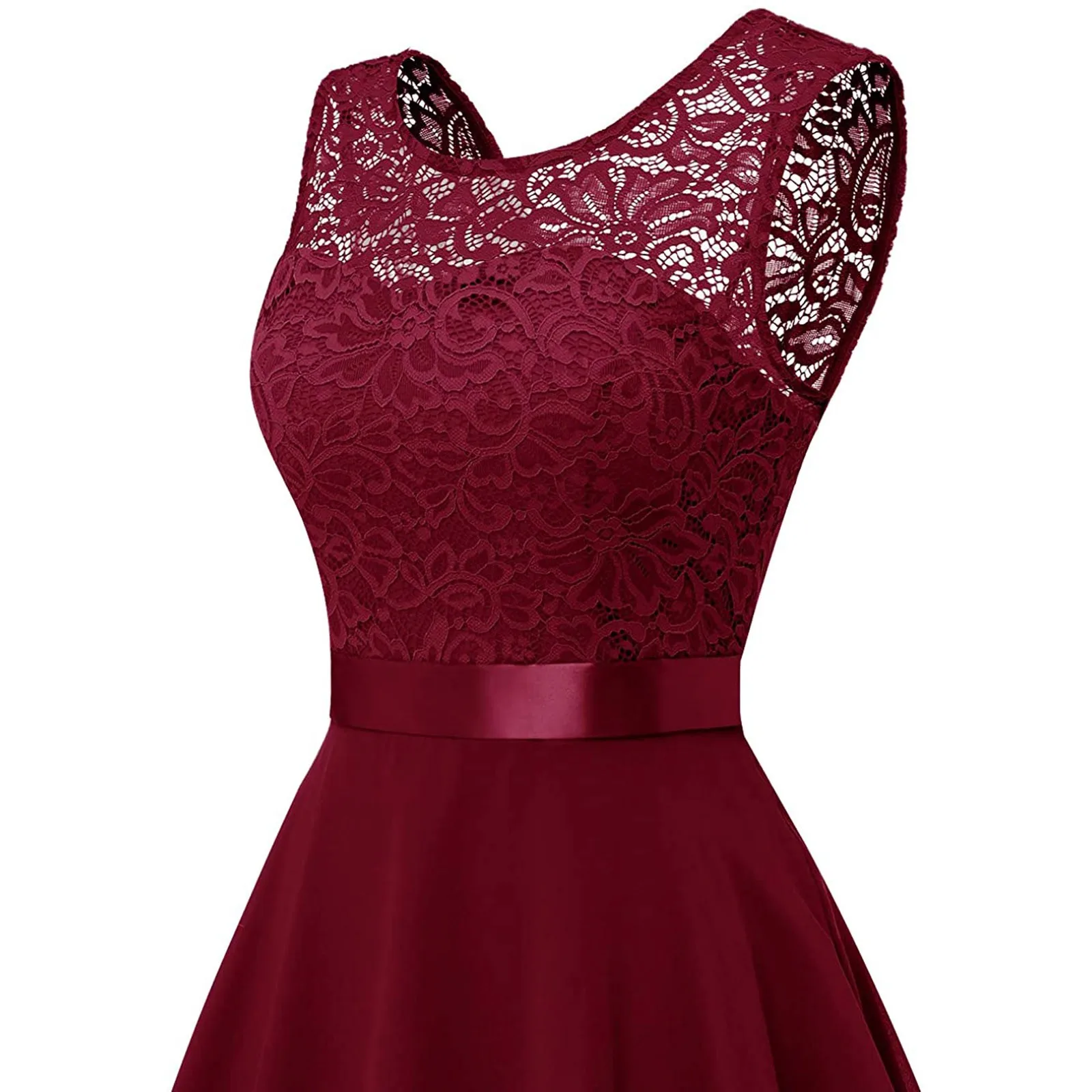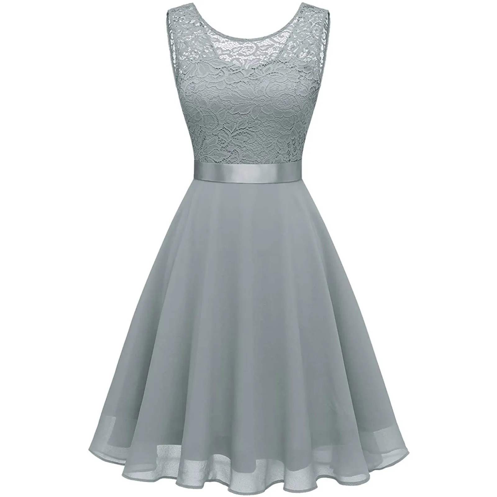 Женское однотонное кружевное платье с круглым вырезом без рукавов, свободное платье с поясом