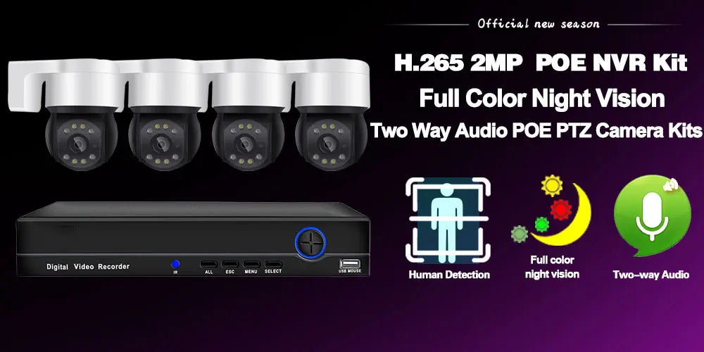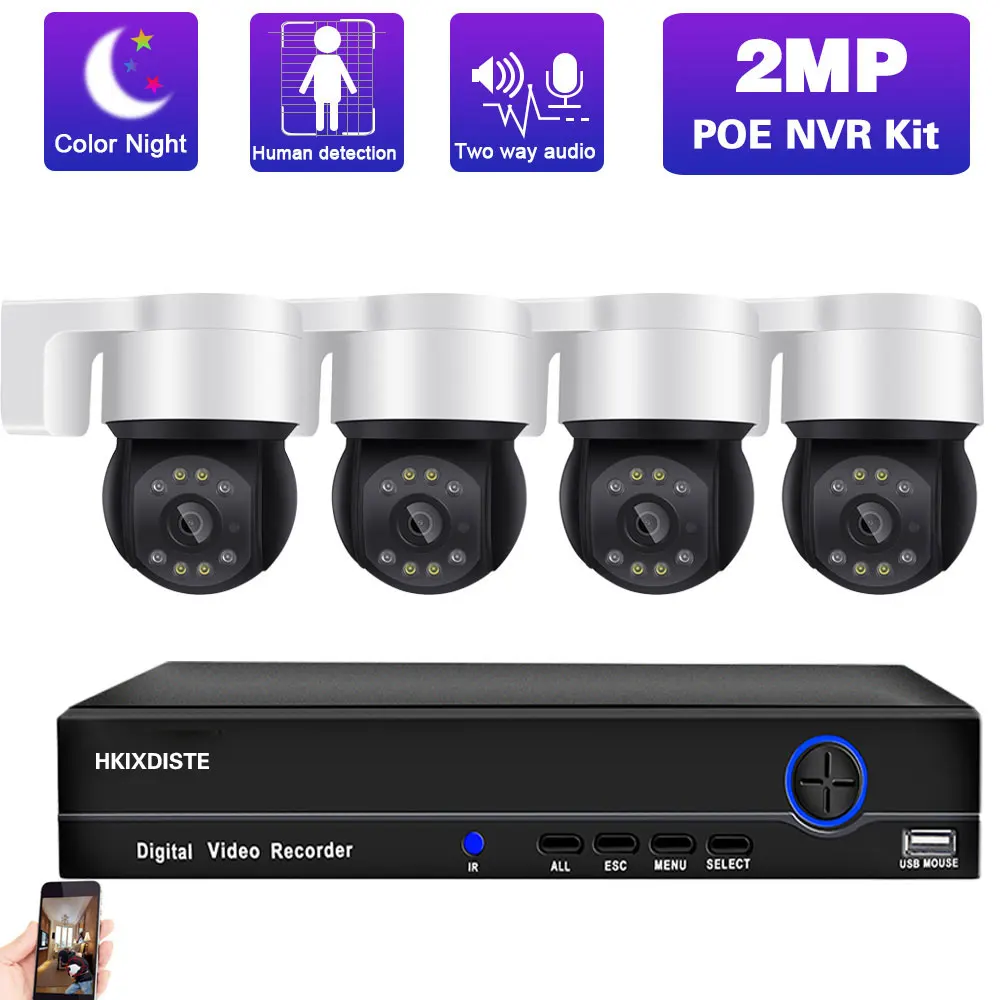 Система видеонаблюдения NVR, 1080P, 4 канала, POE, IP, PTZ, 2 МП