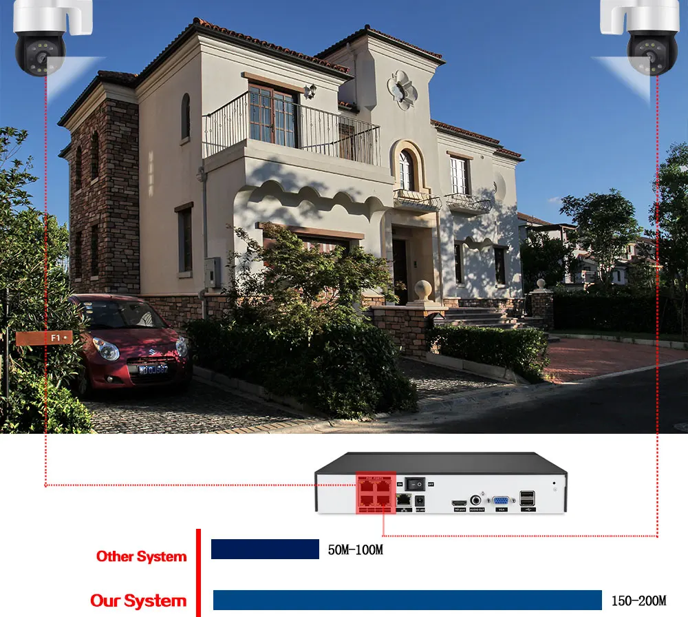 Максимальная поддержка системы POE150-200 мРасстояние передачи кабелей POE, что значительно увеличивает удобство домашней установки.