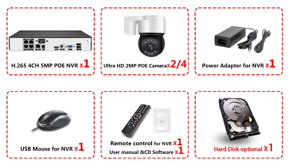 ① H.265 POE NVR система, NVR может поддерживать 5 Мп Макс, вы можете подключить 1MP, 2MP,4MP,5MP камеры с нашим NVR;