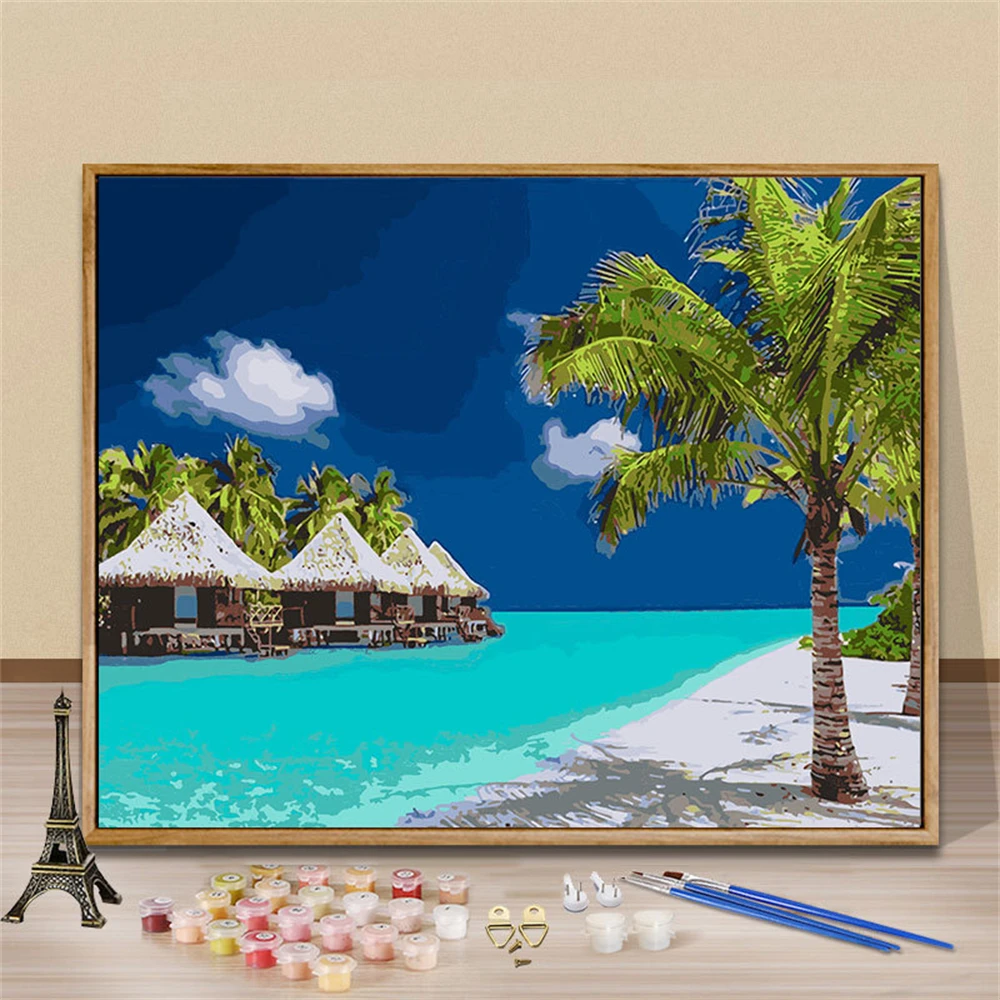 Раскраска по номерам на пляже, праздники, искусственная роспись, ручная роспись, Декор, рисование на холсте сделай сам, раскраска маслом, картина по номерам